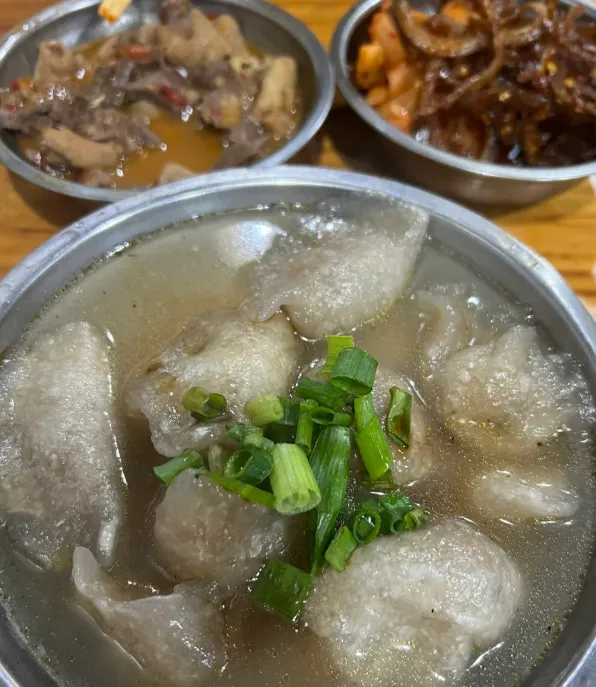 宜黄薯粉饺值得专门说一句。外皮是番薯粉烫出来的,软里带韧,包进肉末、笋丁、香菇,有时再搁点葱花。下锅一煮,皮子透亮,咬开先是滑,再是鲜,嘴里还有一点山货的清气,不张扬,但真耐吃。