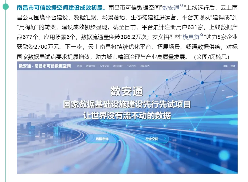 编者按:3月26日,南昌市政公用集团微信公众号平台的“万象动态 | 企业资讯热点速览”栏目,对南昌市可信数据空间建设成果予以关注。