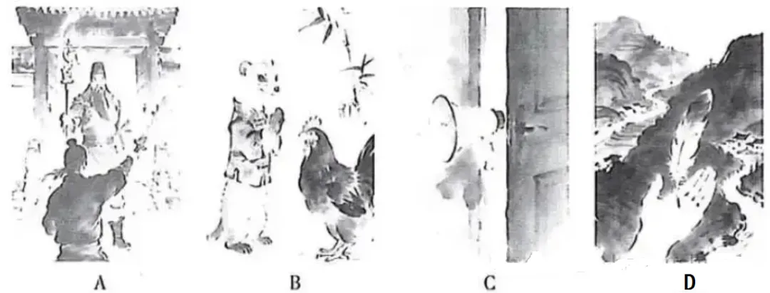 20.下列图片所表明的歇后语属于谐音类的一项是 ()(3分)