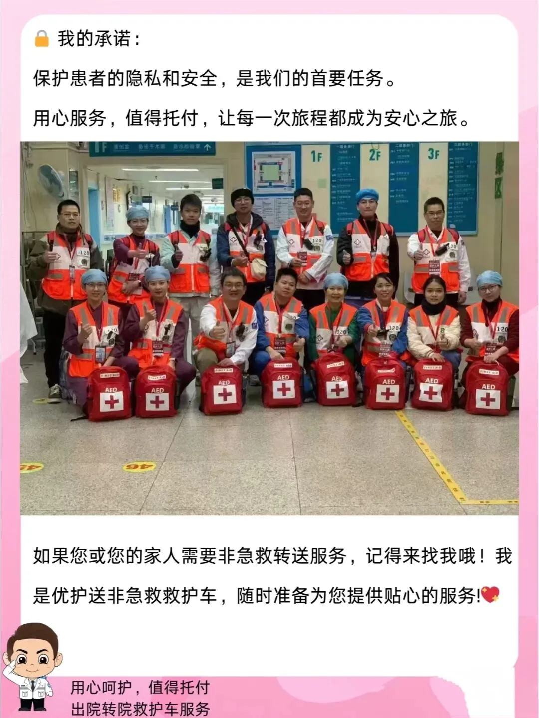 专人专车,设备齐全,全力保障转运途中患者安全。