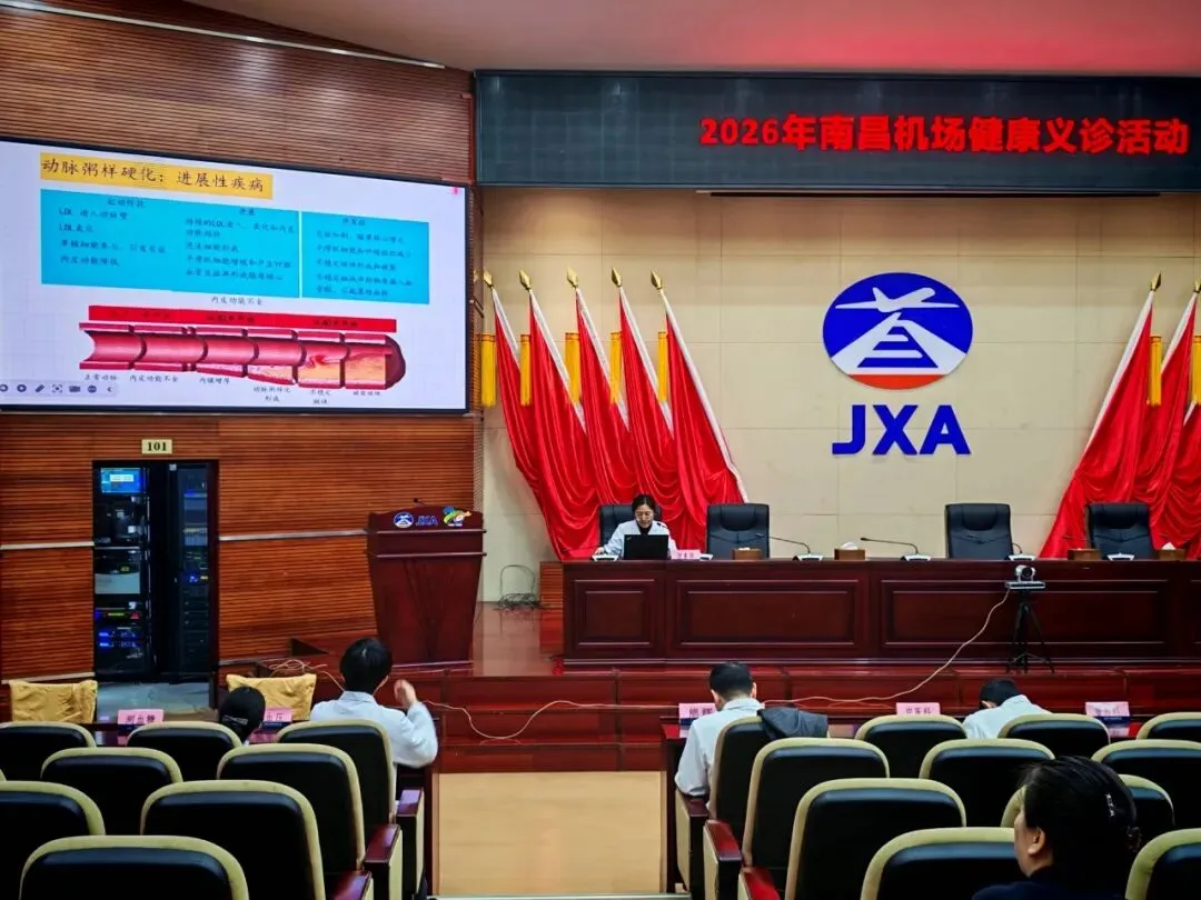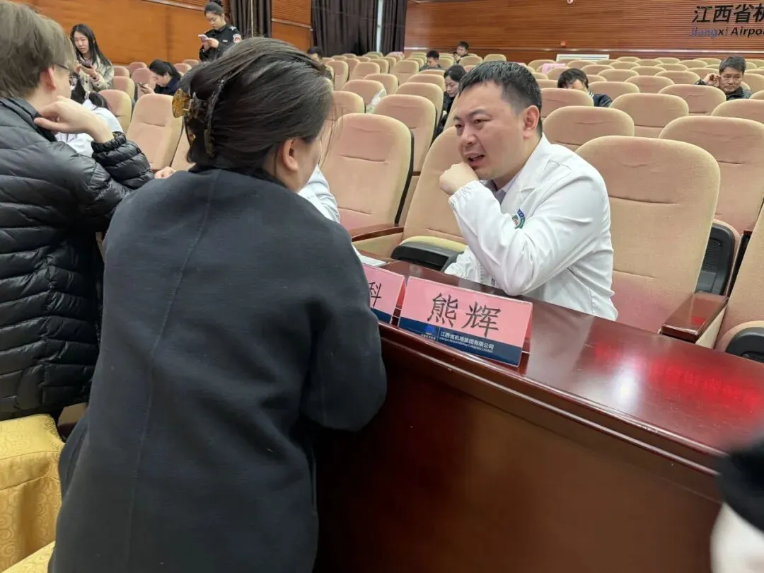 活动开始,赣江新区人民医院健康体检中心熊辉主任围绕近两年机场员工的体检结果进行总结分析,对占比较高的疾病如血脂异常、体重超重、胆囊息肉等展开相关知识讲座。结合机场员工倒班等工作特点,熊辉主任讲解了如何通过合理作息、饮食习惯、科学运动等措施预防消化系统、循环系统疾病。讲座互动环节,员工们踊跃提问,专家一一细致解答,现场氛围热烈。