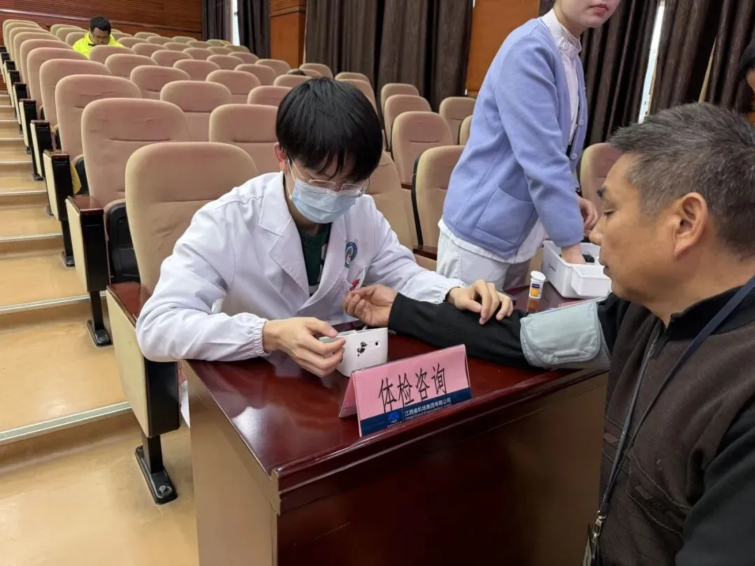 义诊活动现场设置了多个功能区域,涵盖体检咨询、心血管科、普外科、内分泌科、中医科等科室。赣江新区人民医院的专家们耐心为员工进行健康咨询,细致解答各类健康疑问。针对不少员工拿到年度体检报告后,面对密密麻麻的指标和专业术语一头雾水的情况,专家们一对一开展体检报告解读服务。他们首先讲解如何看懂总检结论与建议,再对血常规、血糖、血脂等关键指标的数值波动进行剖析,区分一过性异常与持续性风险,指导员工结合自身生活习惯、家族病史判断健康状况,并给出个性化的饮食、运动及就医建议。