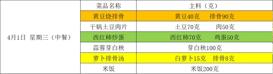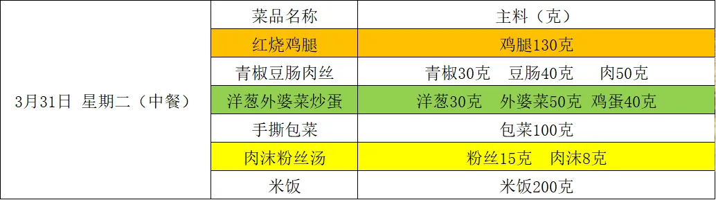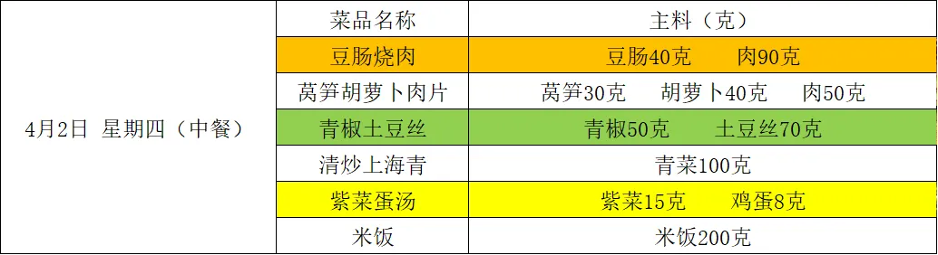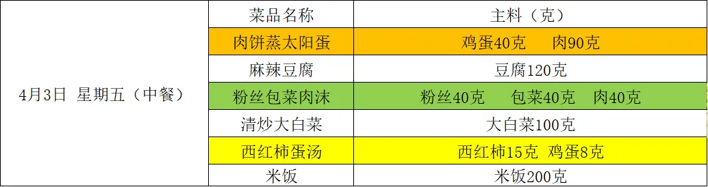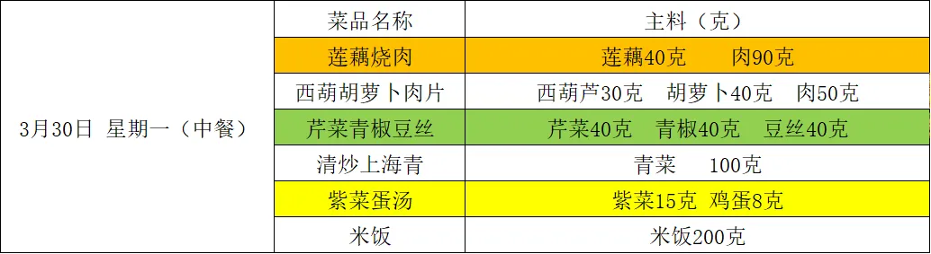 【阳光午餐】南昌二中高新校区一周食谱(3月30日-4月3日)