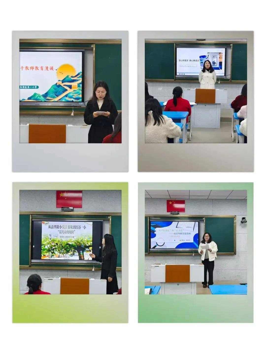 活动中,万秋婷、王丽、肖丹、胡丹丹四位骨干教师立足教学实践,结合自身经验开展专题分享。万秋婷老师分享足球与语文融合教学策略,以单元教学为例,将足球场景转化为习作与复述素材,实现学科协同育人;肖丹老师深耕文本研读,强调教师要精准把握教学目标,依托课后习题锁定重点,打造高效课堂;王丽老师结合清华附小跟岗所学,传递儿童阅读先进理念,介绍特色阅读体系与成果积累方法;胡丹丹老师聚焦阅读理解答题指导,梳理典型题型与答题模板,用科学方法提升学生解题能力。