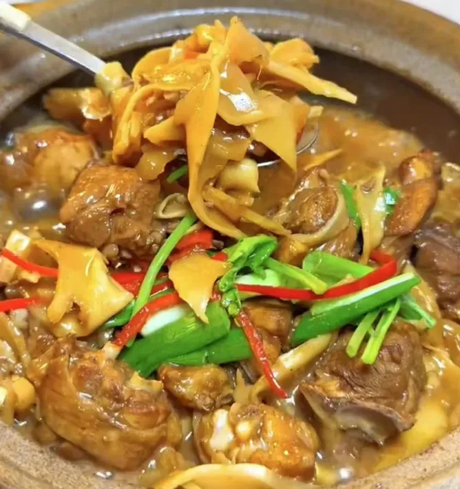 要说一口最能记住的,我会留给笋干烧土鸡。土鸡先炒出油香,再下泡发好的笋干慢炖,最后收汁。鸡肉紧实,不柴,笋干吸满汤汁,咬下去有点韧,后面又回甘。汤一拌饭,人就安静了。