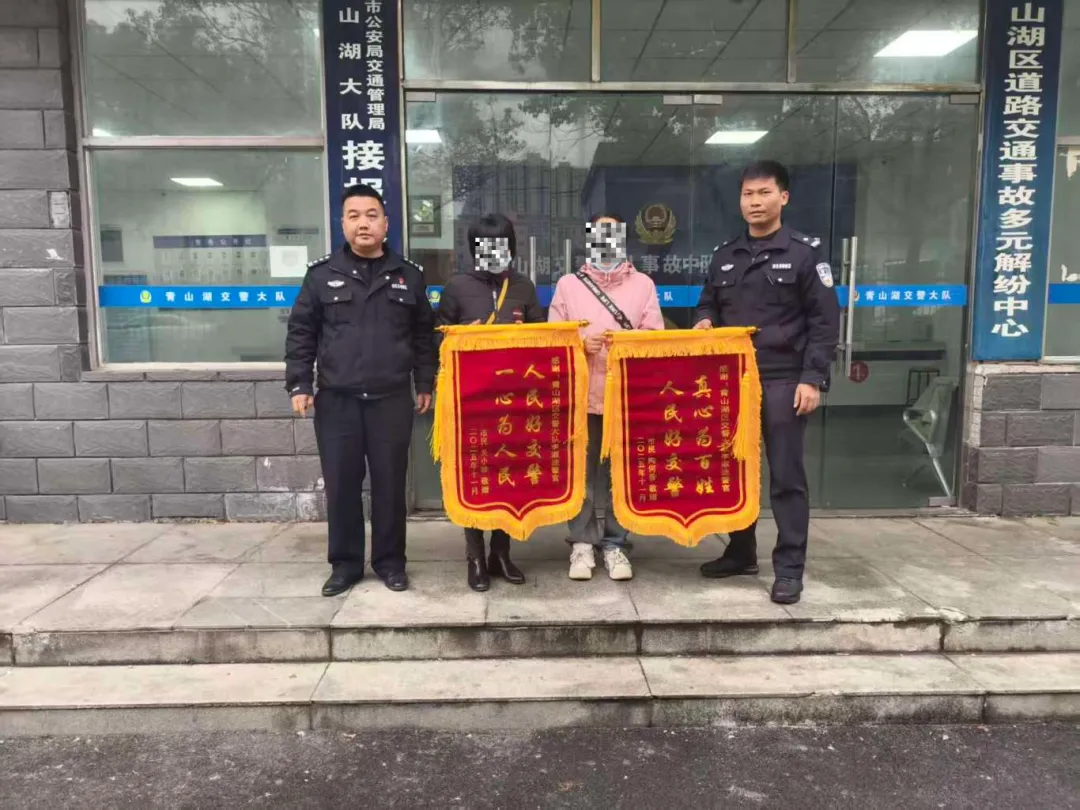 近日,青山湖大队事故中队上演暖心一幕:一起交通事故的双方当事人,一起为民警李淑迷送上锦旗。