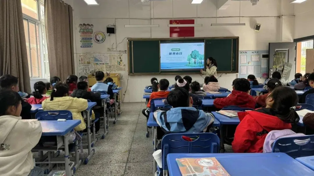 班会课上,各班以 “世界水日・中国水周” 为主题开展专题教育。班主任们通过趣味图片、生动小故事、科普短视频,为孩子们讲解水的重要用途、水资源短缺的现状,以及简单实用的节水小常识,在课堂中为孩子们心中种下珍惜每一滴水的种子。