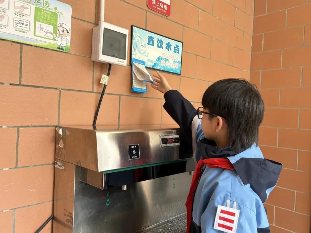 少先队员们组建“校园节水巡查队”,小小巡查员们分组行动,对校园水龙头、饮水机、卫生间等用水设施进行全面检查。发现未关紧的水龙头及时关闭,看到浪费水的行为礼貌提醒,认真填写《校园节水巡查记录表》,用实际行动守护校园水资源,彰显少先队员的先锋模范作用。
