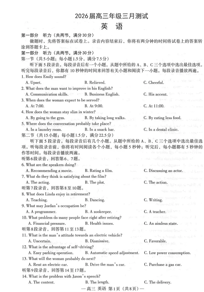 高三试卷:https://pan.baidu.com/s/1ZOow9kyygLdJPcxoy6EQ0Q?pwd=1111 提取码: 1111