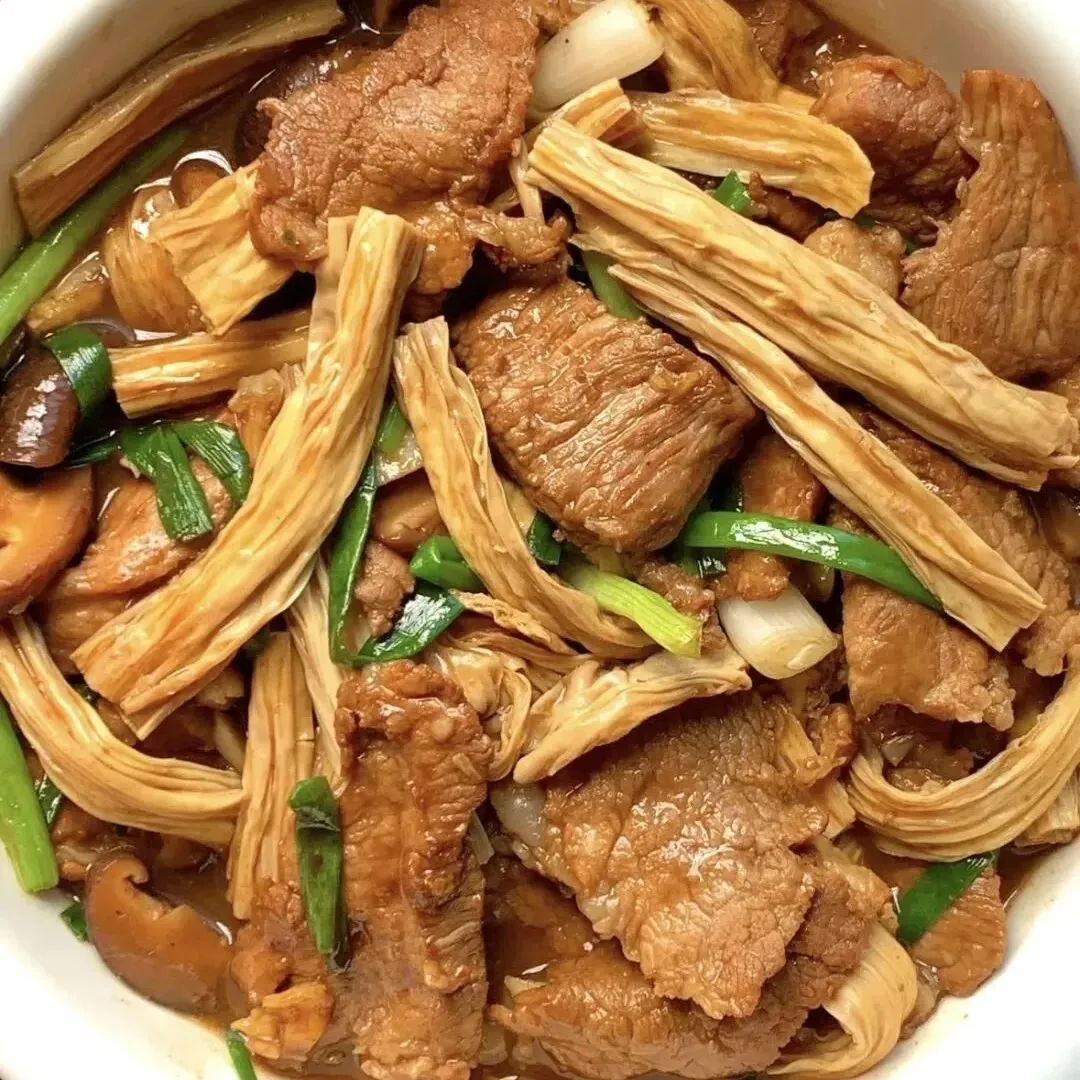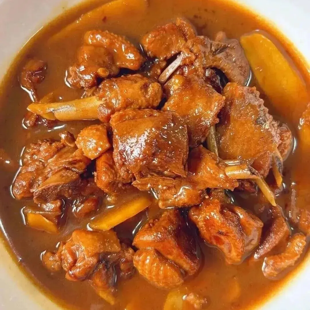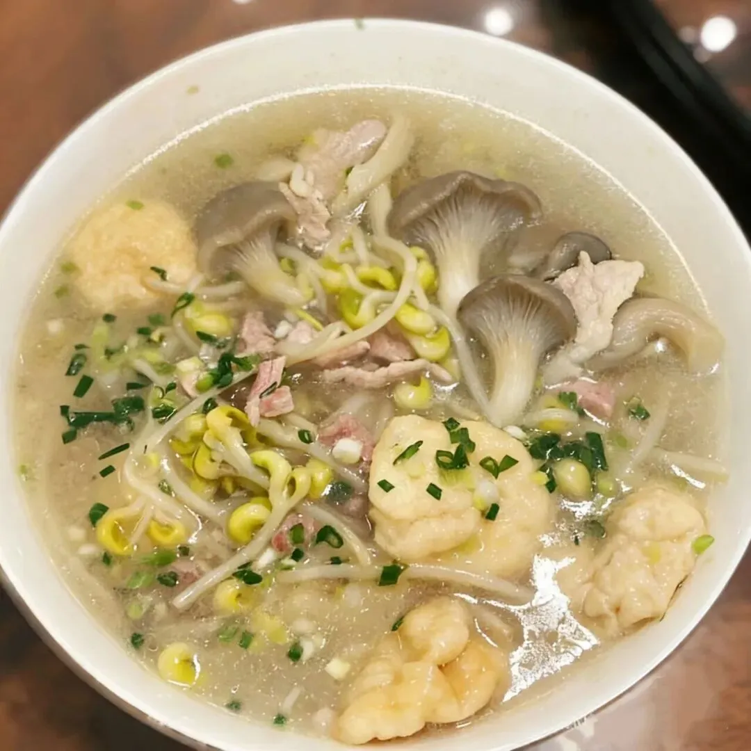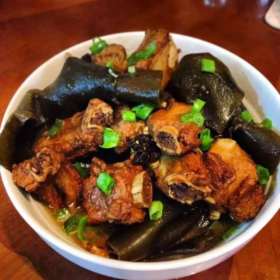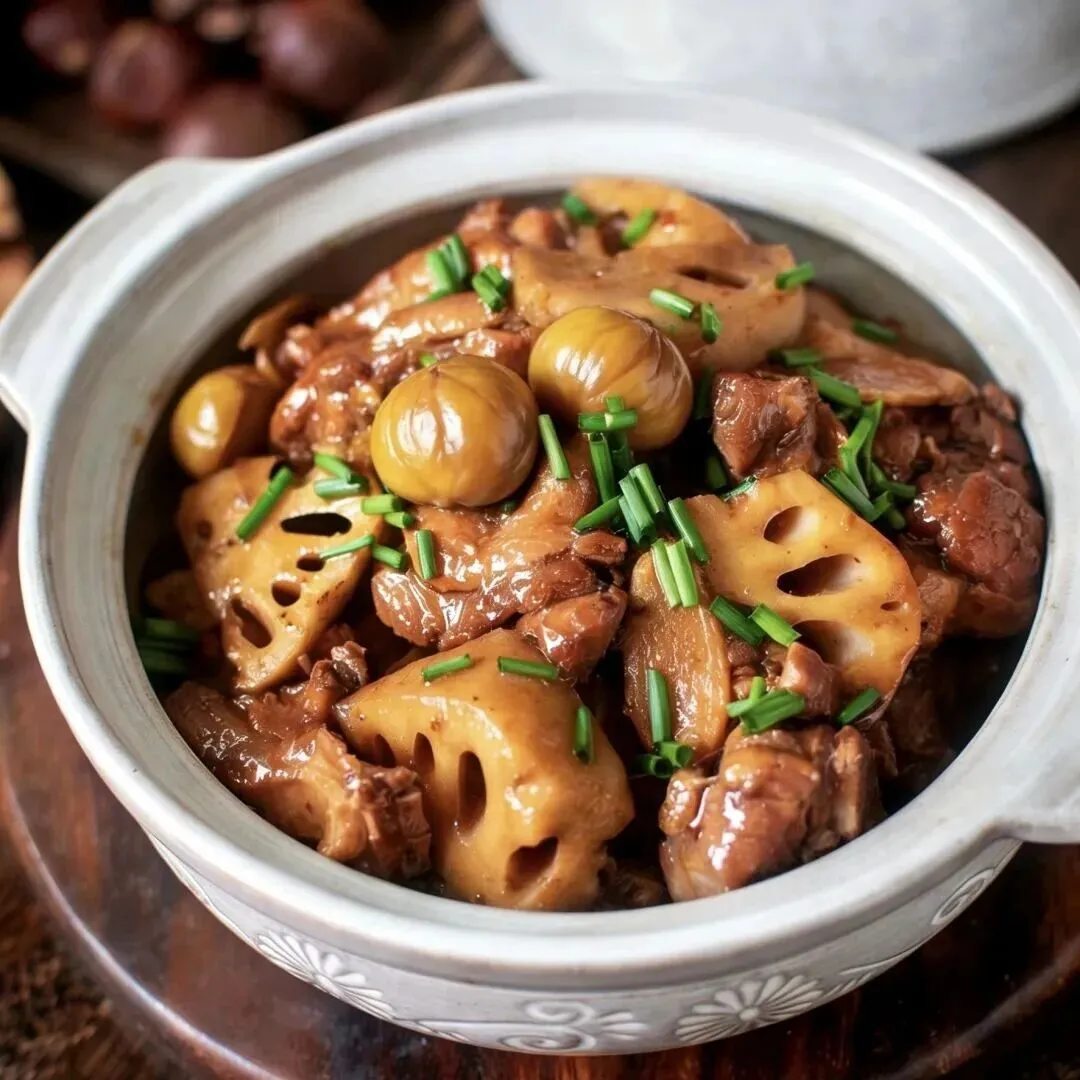 白米饭、板栗莲藕烧排骨、杏鲍菇炒肉、青菜豆腐鱼丸汤