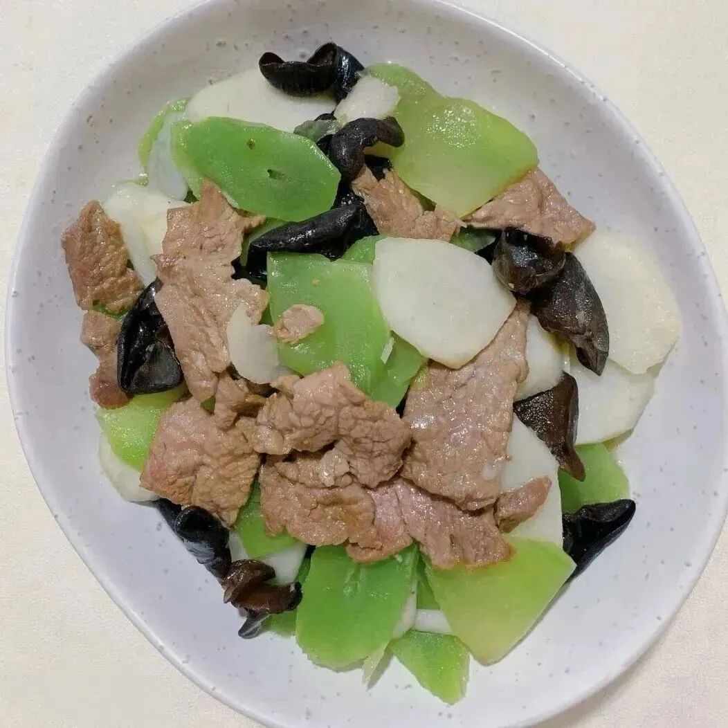 黄金米饭、雪梨枸杞肉饼汤、山药木耳莴笋炒肉、西红柿炒蛋