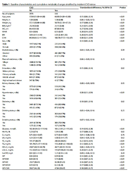 表1 按新发 CVD 状态分层的基线特征及累积代谢变化(滑动看全图)