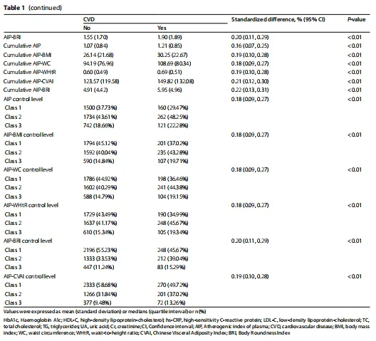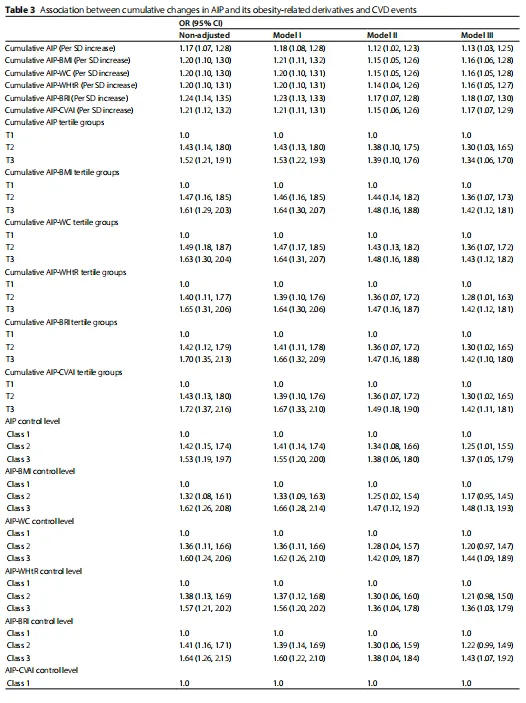 AIP及其肥胖相关衍生物的累积变化与 CVD 风险之间的关联性