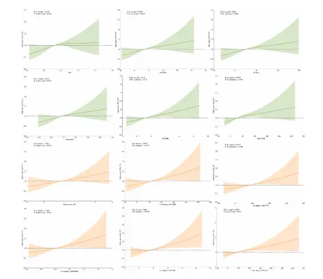 图3 基线/累积AIP及其肥胖相关衍生指标与 CVD 风险的剂量-反应关系
