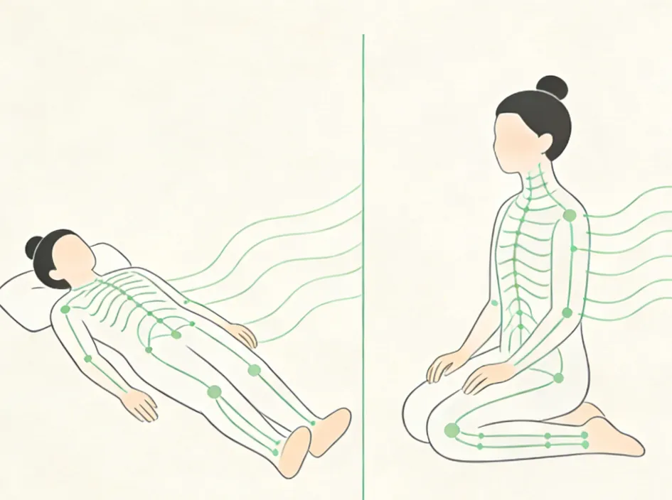 操作方法:静卧不动,舌尖轻抵上腭(这就是传统养生的“搭鹊桥”),能沟通任督二脉,让肾气滋养脑髓。收敛心神,等心绪安宁了再动。