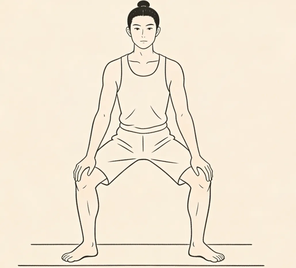 操作方法:双脚分开与肩同宽,双膝微屈,感受双脚踏实落地。保持均匀呼吸,让肝气顺畅,减少头晕、血压骤升的风险。