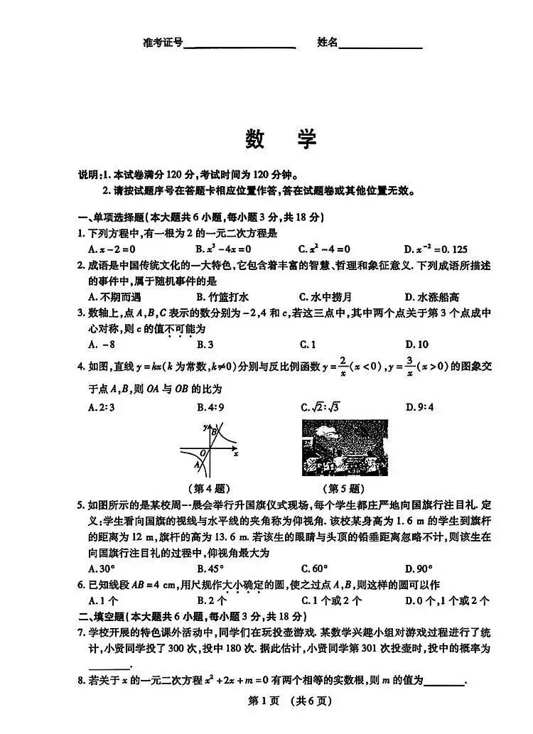 >2026年南昌市零模数学测试卷