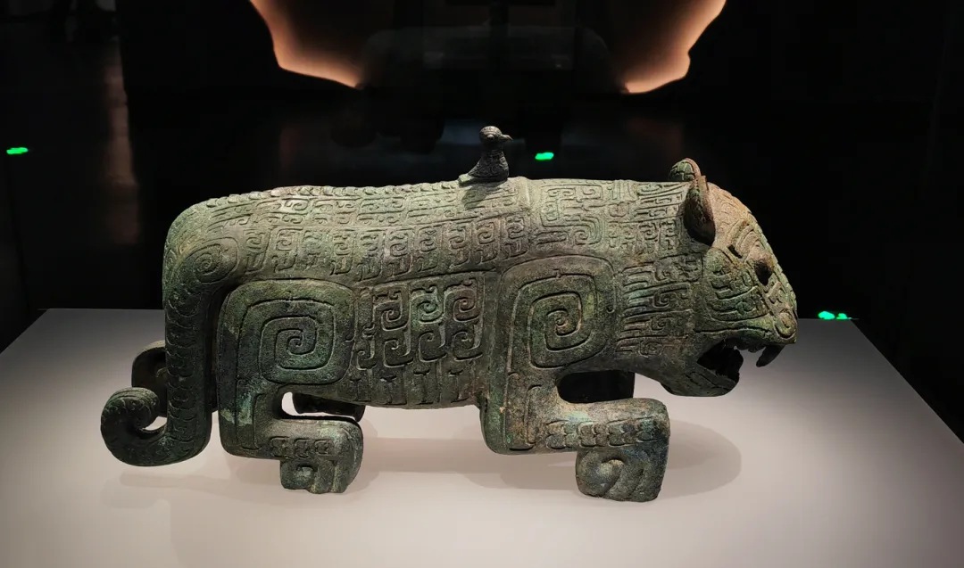 - 1,商代伏鸟双尾青铜虎(新干大洋洲):江南青铜文明代表