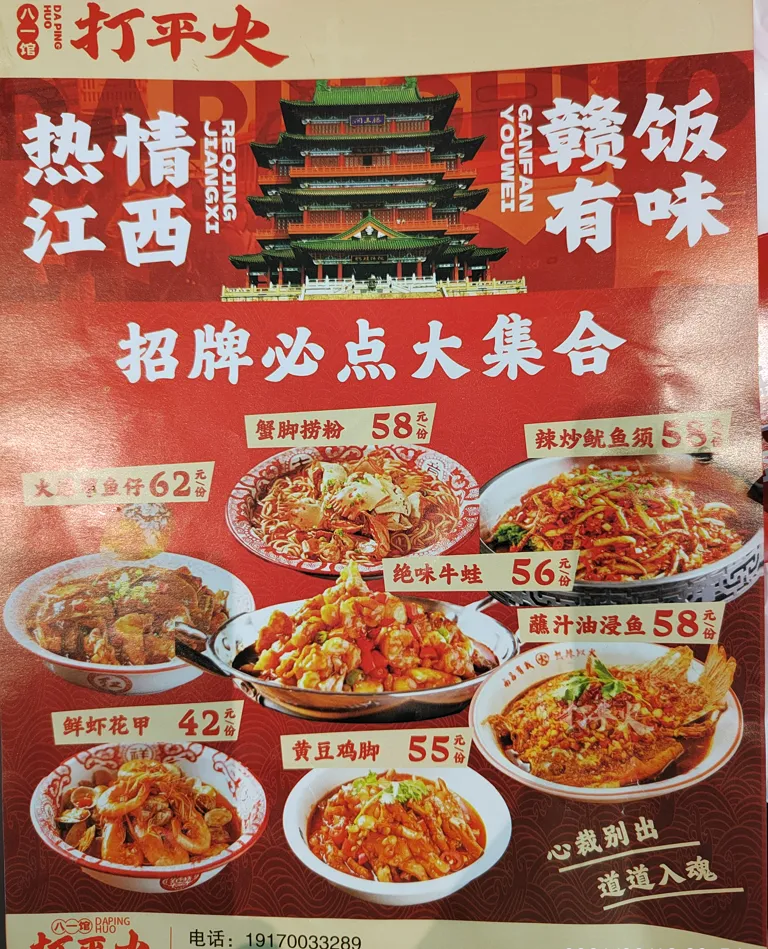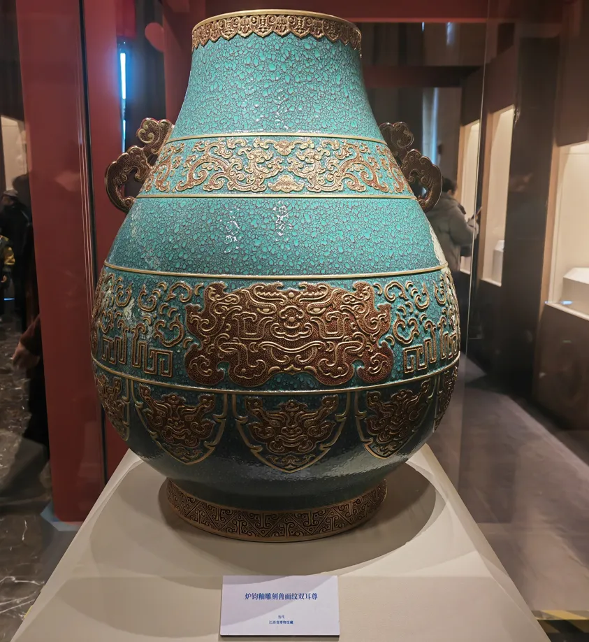 2026年春节前夕,网上看到南昌在大年初一晚上举行烟花秀表演,因家人想去看,遂决定春节去南昌玩几天。第一步就是定酒店,因为我们要看烟花秀,所以就想在靠近赣江附近的老城区来住。 首先查询了携程,发现年前一百多的酒店,大年初一暴涨到三百多,也不知道是因为烟花秀的原因呢,还是节假日涨价,看着房间不多就订了2晚订好后想着看看别的平台价格如何,打开去哪儿旅行,发现相同的酒店相同时间便宜三十多,于是退了又重新订,可见货比三家的重要性了!接下来第二步是计划行程,俗话讲凡事预则立嘛,针对此次3天2晚的南昌游,特地写了个详细的行程计划表,行程表写得很详细,但具体执行可能不一定完全遵循,旅游完发现虽然有些调整 ,但大方向是对的,行程表起到了不小的作用。2月17号,大年初一,在热闹的鞭炮声中,我们坐火车出发了,长这么大还是第一次在春节初一出游,列车上空荡荡的,好像我们的专列,哈哈。听说在除夕夜坐火车还会有免费的饺子吃,这个还没体验过,不知是不是真的?中午时分,我们抵达南昌站,直接下地铁站去坐地铁2号线,乘4站路到达阳明公园站。目前南昌地铁有4条线路,基本覆盖了市区比较有名的旅游景点,还是比较方便的。到达酒店,放下行李,办好入住登记,我们先去了附近的蛤蟆街吃中饭。步行5分钟就到了蛤蟆街,蛤蟆街正名叫豫章后街,别名蛤蟆街,就是老城区的一条小巷改成步行街,街不宽,几百米长吧,人气很旺,基本上人挤人了,逛完后发现蛤蟆街的尽头是大士院街,一横一竖的两条步行街形成南昌市老城区最热闹的小吃区了,有各种小吃,饭馆,旅游纪念品店,网红打卡点等等,还是值得一逛的。从大士院街尽头出去右拐,走5分钟,上立交天桥,即可到达滕王阁景区,在天桥上远眺滕王阁景区,可见滕王阁临江伫立,气势飞虹,雕梁画栋,典雅古朴,一派古典园林的景像。在作行程计划时,尽管提前了4天,却还是没有预订到入园的门票,可见滕王阁景区是很热门的。我们沿着江边滕王阁景区外围转了一圈,也算是粗略游了一游。滕王阁是唐高祖李渊的第二十二子,也是最小的儿子李元婴于永徽四年(653年)修建的游宴歌舞之所。为什么叫滕王阁呢?因为在贞观十三年(639年),11岁的李元婴被唐太宗李世民封为滕王,封地在今山东滕州,李元婴在滕州建了第一座滕王阁,后因骄奢被调离了滕州。永徽三年(652年)李元婴由苏州刺史转任豫章郡的洪州都督,次年即在赣江边上建阁,仍以封号命名为滕王阁。遥想一千三百多年前,初唐四杰之一的王勃,因去交趾郡(今越南河内市)探望父亲,路过洪州,受洪州都督阎伯屿的邀请到滕王阁赴宴,当他把酒凭栏,面对着滔滔赣江水,诗兴大发,在众人的赞叹声中,挥毫写下了“落霞与孤鹜齐飞,秋水共长天一色”的千古名句,滕王阁也因他的《滕王阁序》而流芳千古。滕王高阁临江渚,佩玉鸣鸾罢歌舞。画栋朝飞南浦云,珠帘暮卷西山雨。闲云潭影日悠悠, 物换星移几度秋。 阁中帝子今何在?槛外长江空自流。从滕王阁景区转出来,我们到叠山路上的全季酒店门口,因为此处人多车多,坐公交和地铁都不方便,我们打了个车去江西省博物馆。江西省博物馆位于红谷滩区,周边还有省图书馆,省科技馆,俗称新三馆。老馆位于八一广场,新馆于2020年9月27日开馆,藏品总数:60437 件 / 套,一级文物:370 件 / 套;二级 1070、三级 9293。必看的镇馆之宝有: