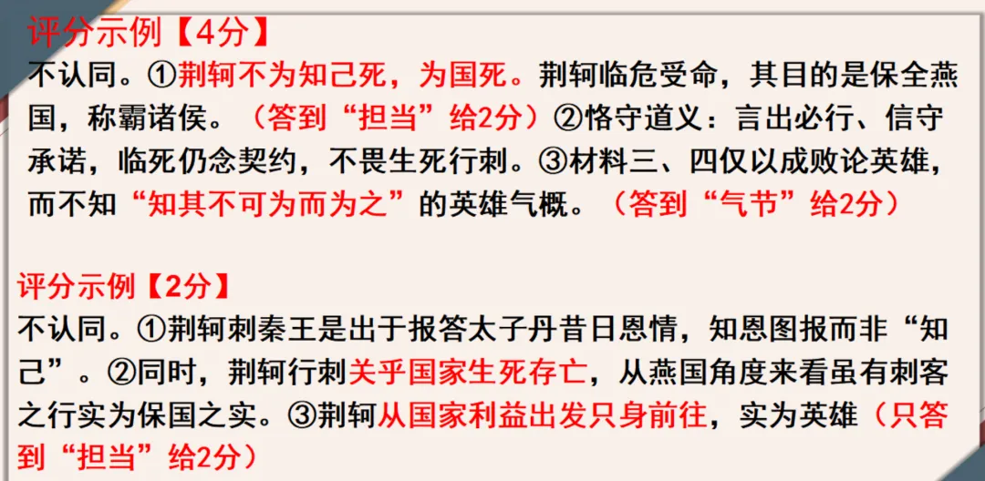 14.《居易堂集·荆轲论下》中提到“荆轲非英雄也,特侠士耳。彼所知者,士为知己者死耳”。对于这一观点,你是否认同?请结合四则材料,谈谈你的理解。【诗歌鉴赏】