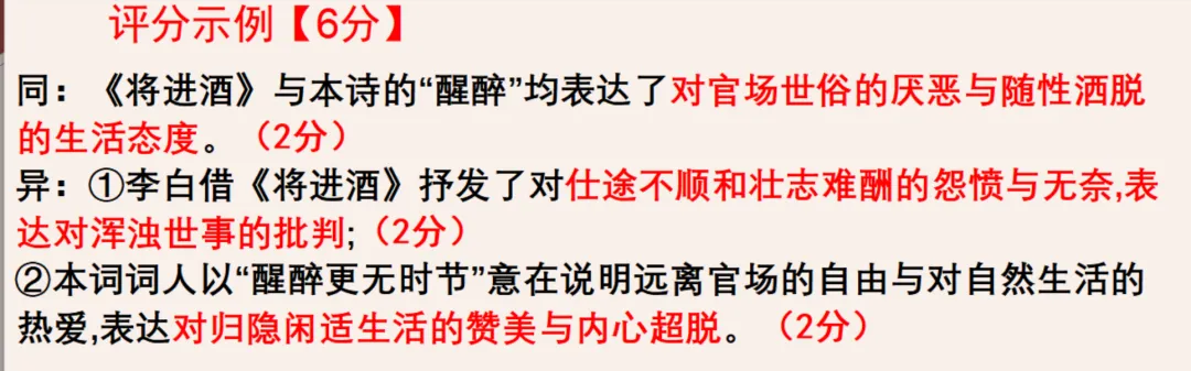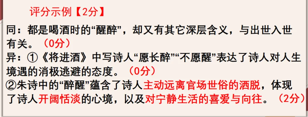 第四步:规范作答——先答相同点,再分点答不同点,每点结合诗句语境,说明“醉醒”的含义及情感,避免泛泛而谈,确保扣题、条理清晰。