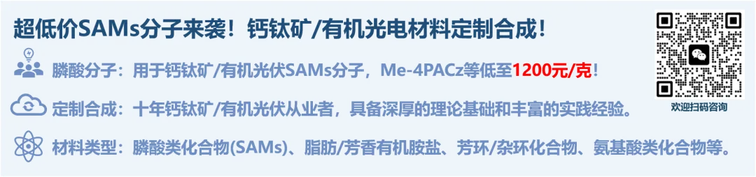 2. 以1,500 rpm的速度将PbI2、PbI2–CsI和PbI2-DPPBCs前驱体溶液旋涂到SnO2上35秒,然后在70°C下退火1分钟。随后,以2,000 rpm的速度将有机胺盐溶液旋涂到PbI2层的顶部30秒(手套箱的温度约为20–21°C)。空气环境中(相对湿度为30–40%,温度为20–21°C),并在160°C下退火20分钟。