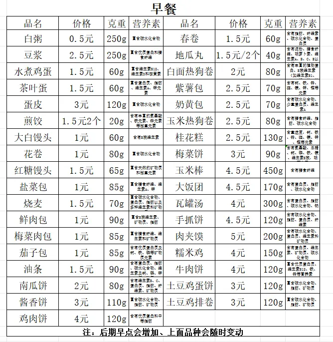朝阳校区早餐