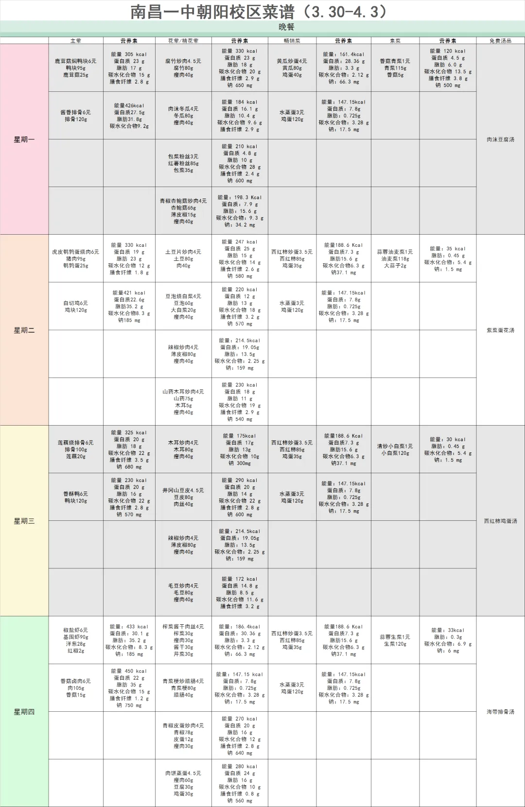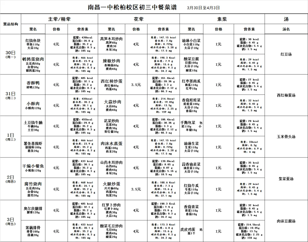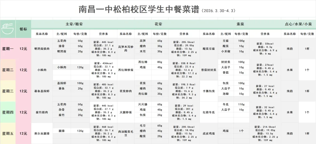 南昌市第一中学第5周食谱