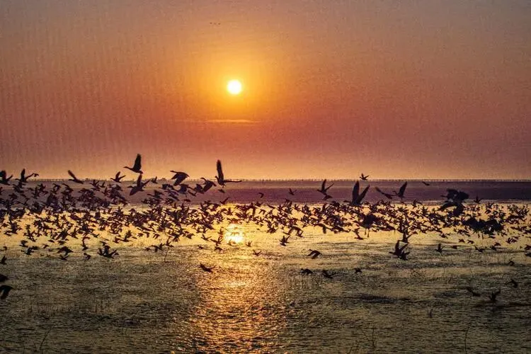 吴城古镇看候鸟的口岸在这,深秋到来年春,白鹤,鸿雁,灰鹤,一群一群落在滩地。