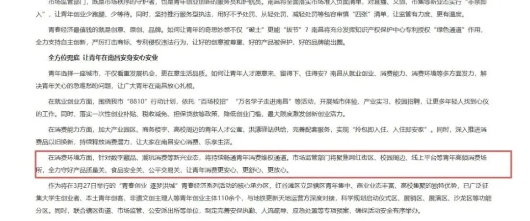 2026年3月26日,南昌市人民政府发布《南昌市促进青春经济实施方案》,首次明确将数字藏品、潮玩消费等新兴业态纳入“青年消费”范畴,并指定市场监管部门为监管主体。这一政策被业内视为数字藏品行业走向规范化的重要信号,试图在创新与风险之间划定清晰边界。