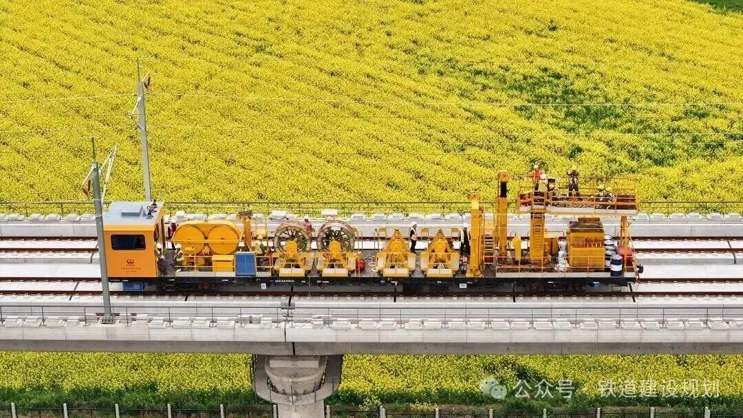 接触网导线架设是高铁“四电”(通信、信号、电力和电气化)工程的关键环节。据介绍,此次架设过程中,项目团队采用恒张力放线设备,通过实时监测并动态调整架线参数,将导线张力、平直度误差精准控制在0.1毫米以内。