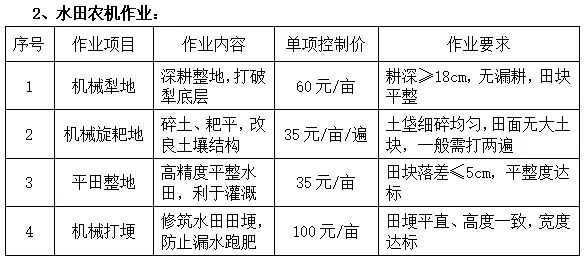 1.报价为综合单价报价,包含人工、机械、燃油、设备折旧、运输、安全保障、税费等所有上表中农机作业相关的费用,报价完成后不再调整。