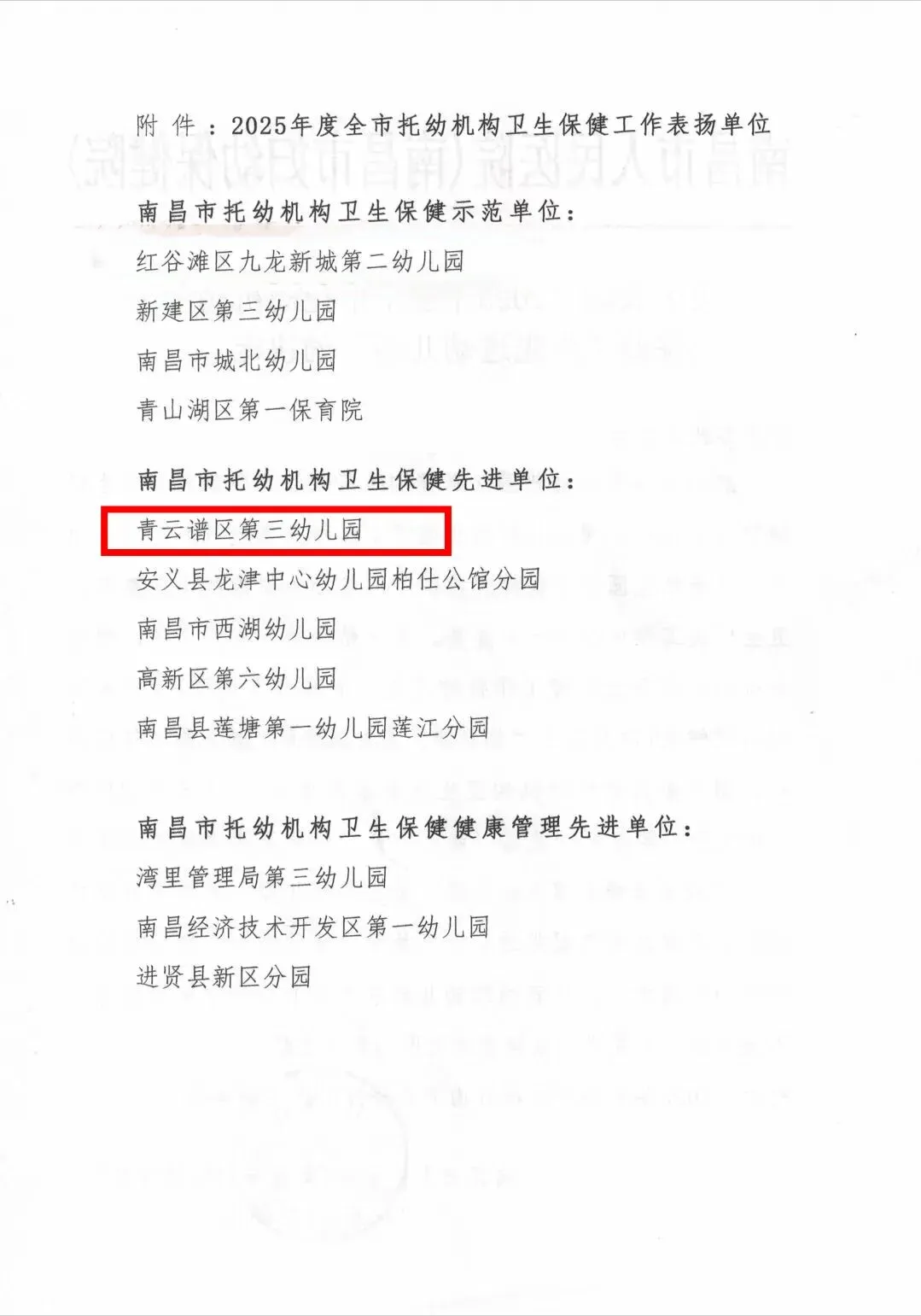 【喜报】南昌市青云谱区第三幼儿园获评——南昌市托幼机构卫生保健先进单位