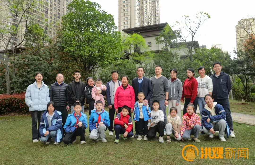 方根水一家有22口人,一大家人得知拍全家福的消息后,十分激动。全家福的拍摄在小区休闲广场一处开阔空地进行。