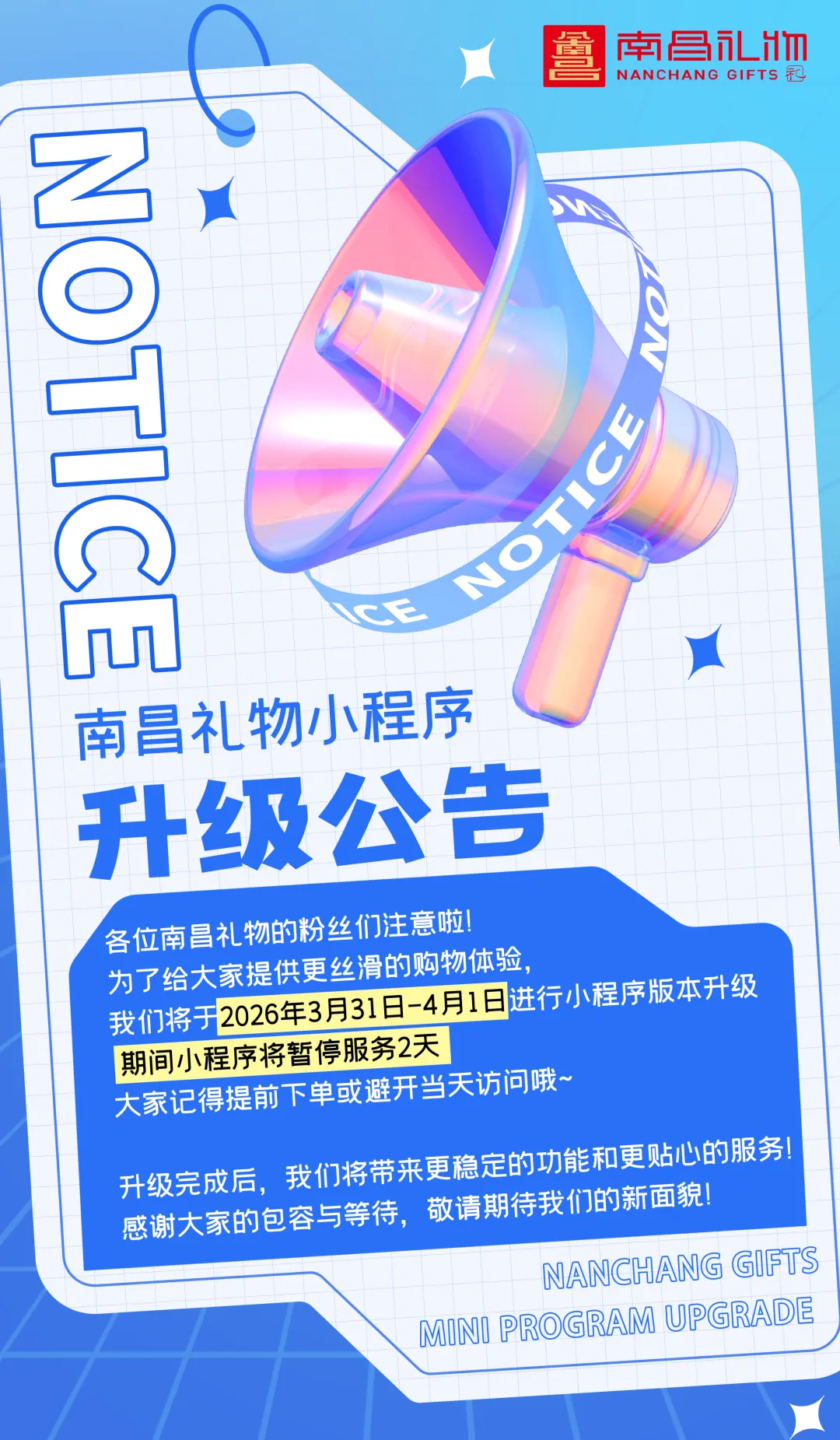 >南昌礼物小程序升级公告