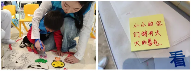 暖心互动环节中,到场群众以拥抱、微笑向孩子们传递温情。大家一起书写祝福卡片与爱心寄语,一句孩童写下的 “小小的你们,拥有大大的勇气” 格外动人。孩子们还现场动手制作了手工画作,送给到场群众。