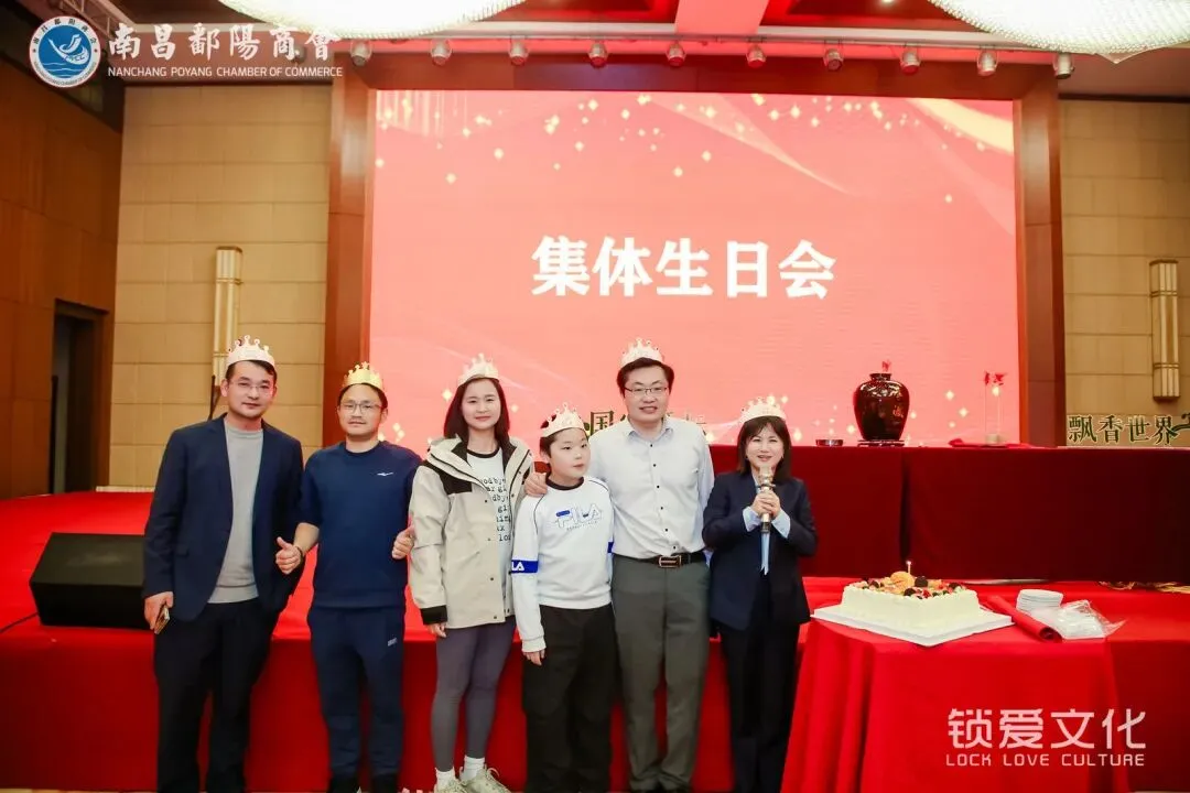 夜幕降临,迎春晚宴温情开席。晚宴期间,王中华携手李渡酒业与商会共同举行美酒开坛仪式,随后温馨的集体生日会同步开展,酒香与祝福交织,欢声与笑语相伴,尽显商会大家庭的温暖与情谊。