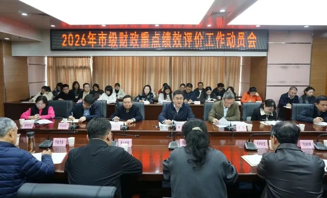 会议对2026年市级财政重点绩效评价工作进行部署,市中级人民法院、市工信局、市财政局金融科作交流发言。