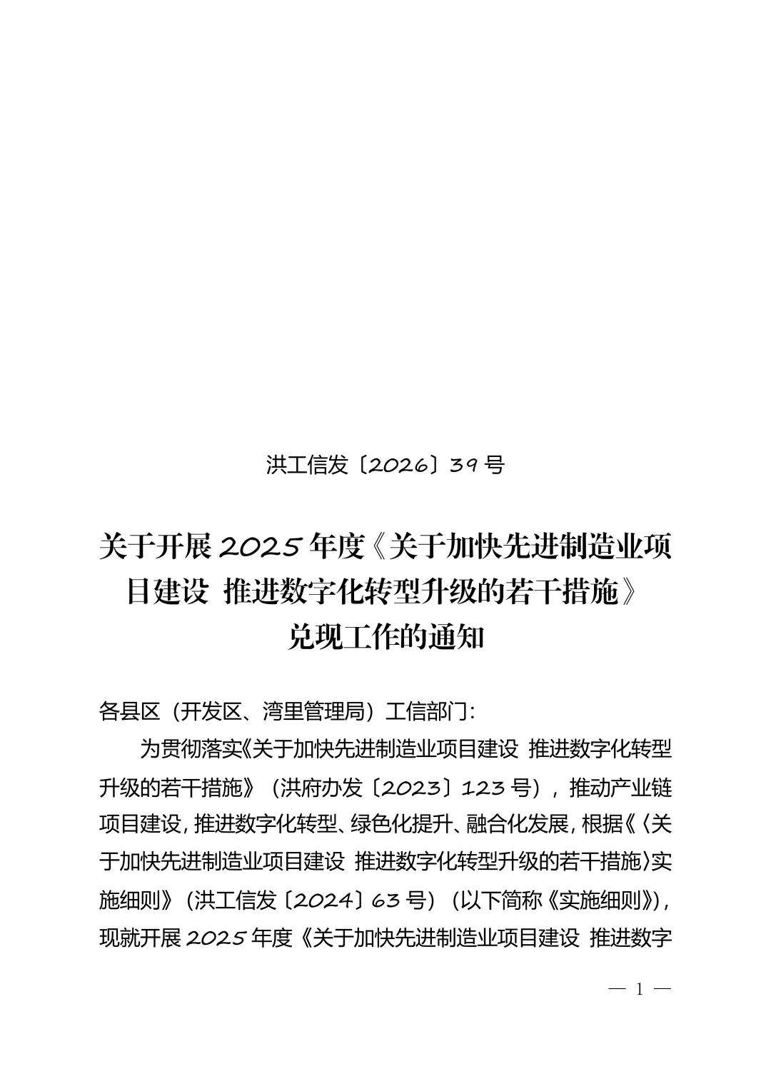 南昌市 :关于开展2025年度《关于加快先进制造业项目建设 推进数字化转型升级的若干措施》兑现工作的通知