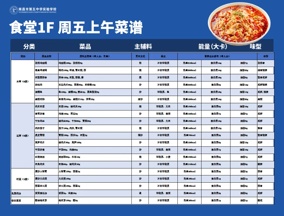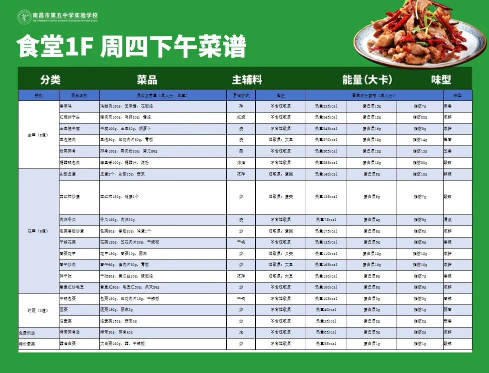 健康的饮食是学生成长的根基,日常的营养膳食是保证学生身心成长的关键基础。为提升师生膳食质量,守护师生“舌尖上的安全”,南昌五中后勤部门精心设计了兼顾营养与风味的美食菜单,多措并举,全方位保障师生享用的餐食安全、营养、美味。