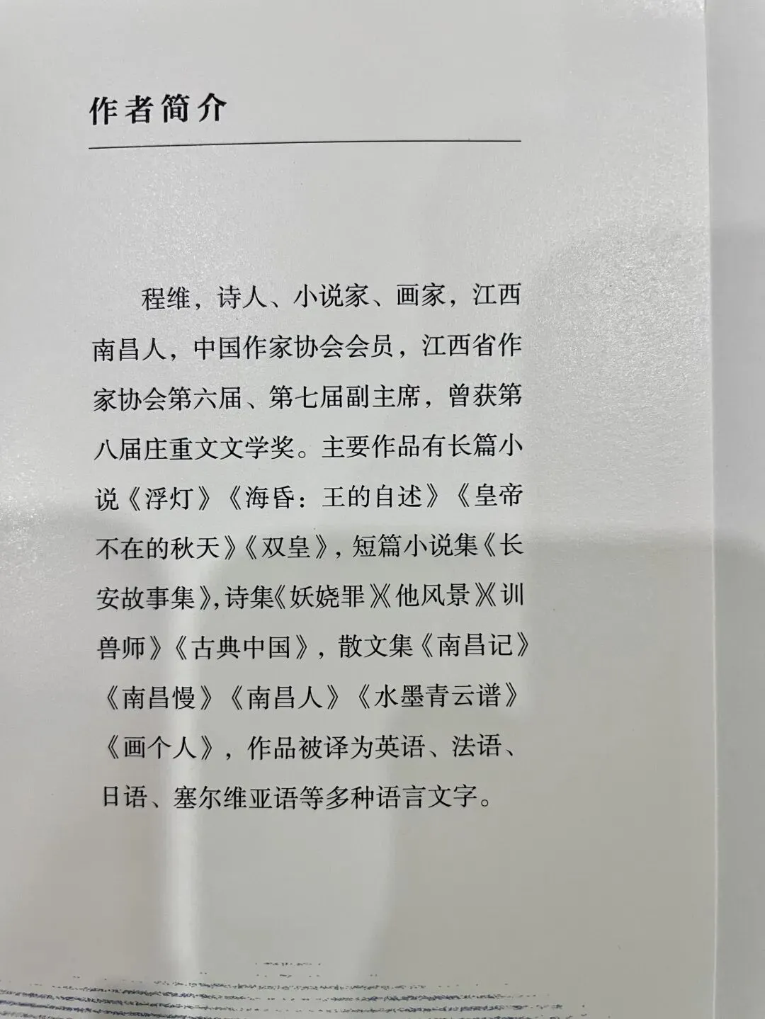 程维穿梭于利玛窦、朱宸豪、王阳明、灌婴、项羽、等历史人物的生死命运之中,用当事人的口吻述说历史风云,天人合一,无我无二。在《南昌行》这本书中,读者可以和董源、汤显祖、晏殊、汪大渊、张位、魏良辅、梅福、蒋士铨等等历史人物推心置腹的交流哦。还可以了解友竹花园、宁王府以及南昌的城门、城隍······