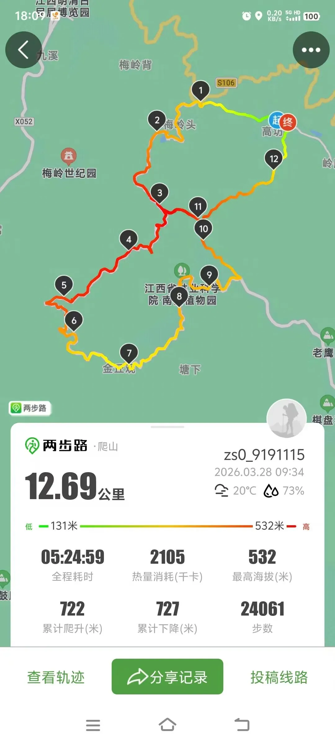 本周末,南昌越野多位群友参加了多场越野赛,包括四川彭州熊猫蜀道山超级越野赛、南京金陵越野赛、“云间花径”莫干山越野赛、黄山徽州古城越野赛等等。。Just农民和南昌小分队的几位群友参加了柴古唐斯旗下的熊猫蜀道山超级越野赛。祝贺农民安全完赛,看着鞋子都能知道这是一路玩泥巴过来的:群友冲天周六周日背靠背参加了南京金陵100越野挑战赛25K组和山径探索训练赛,两个比赛都取得了第三名的好成绩,恭喜冲天,站台要趁早:群友阿卢第一次冒泡,发来她参加的徽州古城越野赛的轨迹,祝贺阿卢顺利完赛:“跑了个女子第十二,才跑了一年越野的52岁的我知足了[偷笑]”“这个是徽州古城越野赛,小太阳的,硬化路太多,今天好晒”“盐丸只带了六粒,后面十公里腿抽筋得生痛[流泪]”“23年才接触跑步,去年才接触越野,算小白不,那算大白[调皮][捂脸]这是人生第三场 ” 群友苏眉、雯子等几位美女参加了“云间花径”莫干山越野赛,美女们都享受赛事,乐在其中: