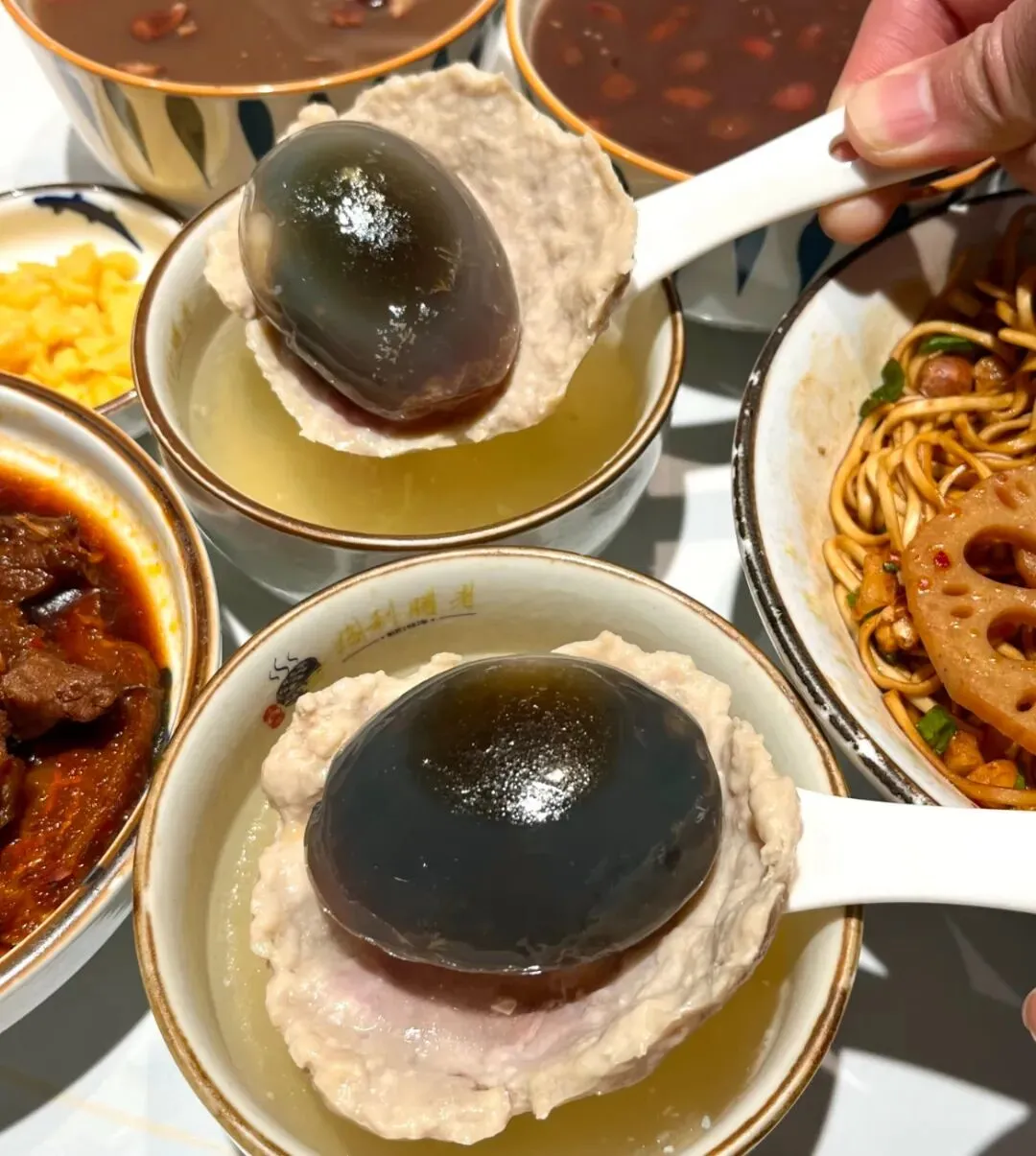 端上来duangduang的,好大一个,汤汁用吸管喝,好鲜,好满足!后面我们又去吃了牛肚拌粉,米粉爽滑,口感丰富,牛肚是提前卤好的,味道很浓厚,搭配藕片香辣开胃。吃拌粉怎么能不喝瓦罐汤了,一整颗皮蛋放里面,使汤味更鲜美,皮蛋入口即化,配上肥瘦相间的肉饼,在喝一口鲜美的汤,这个皮蛋肉饼汤是我们三人最爱。这次的南昌之行把我们三满足的,吃的基本上没踩雷,玩得也很开心,南昌,下次还来!
