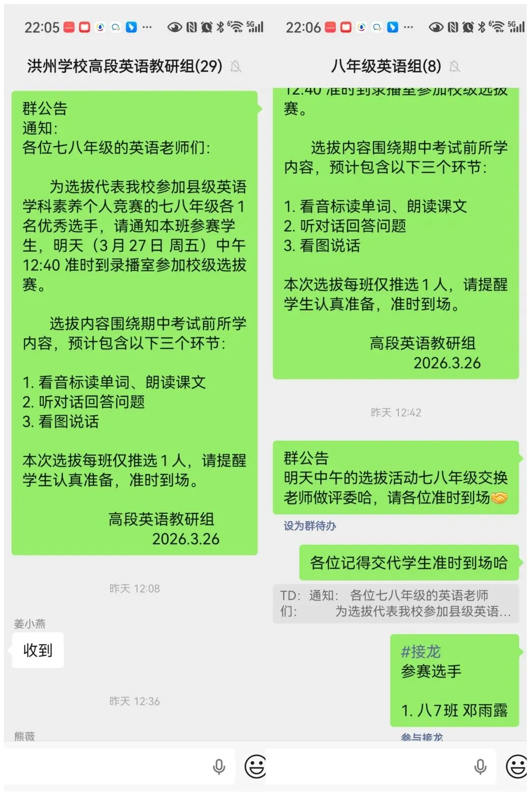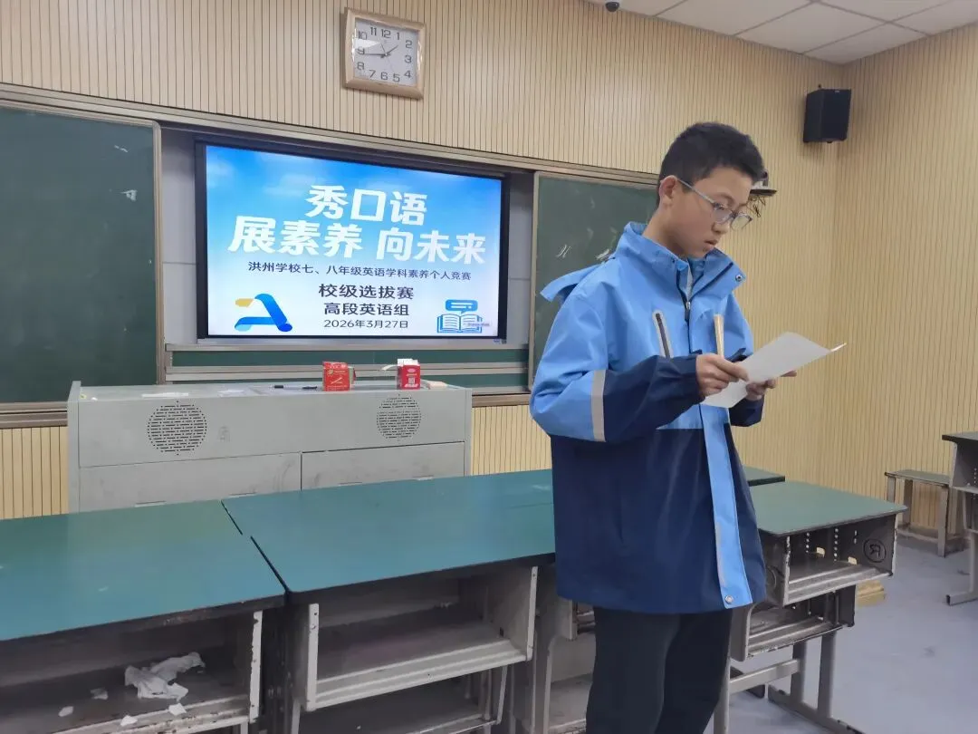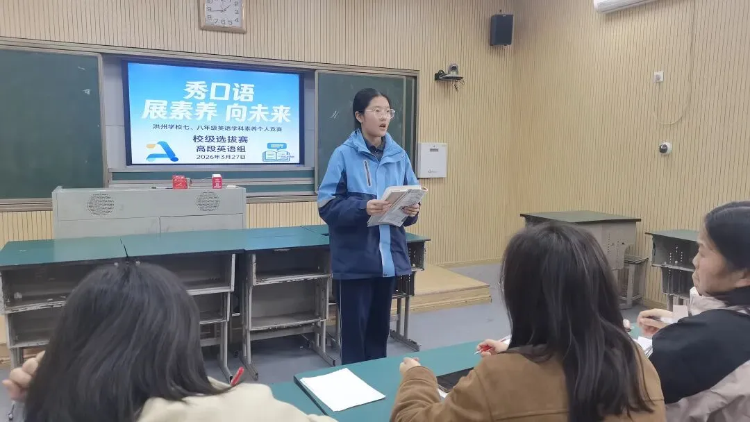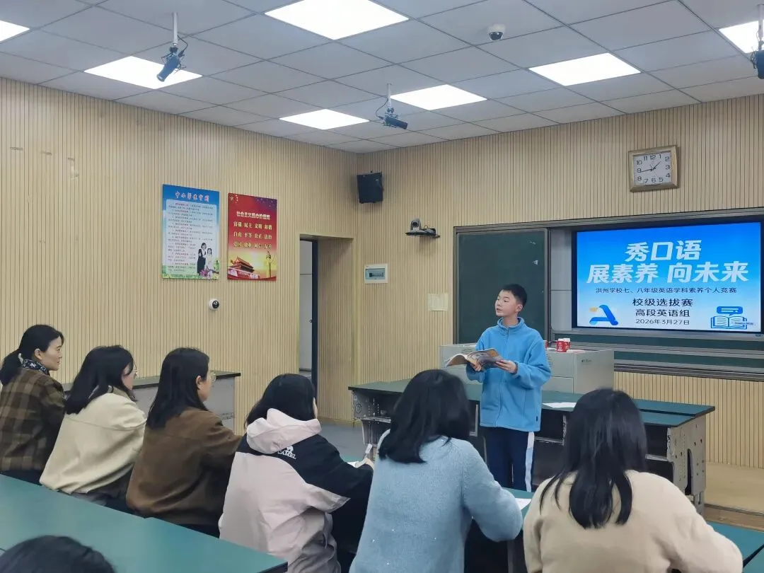 为选拔优秀学子代表学校参加南昌县初中英语学科素养个人竞赛,我校于3月27日中午在录播室教室举行了七八年级英语学科素养校级选拔赛。本次活动由高段英语教研组精心组织,七八年级参赛选手同台竞技,展现英语风采。
