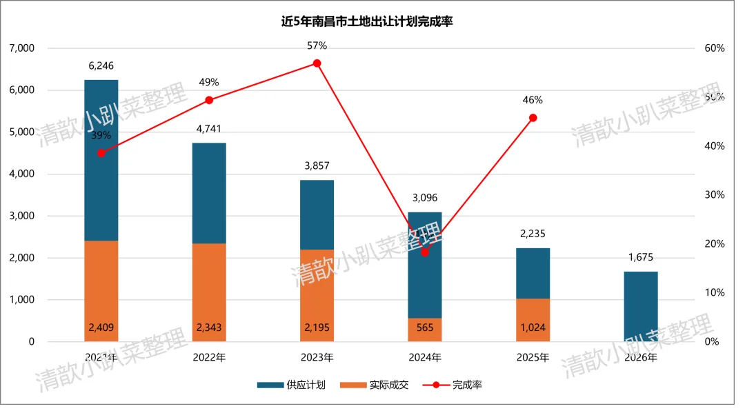 1.南昌 2026 年供地计划虽超去年全年去化,但实则供地规模已连续 5 年下降,仅为 2021 年的 1/4。