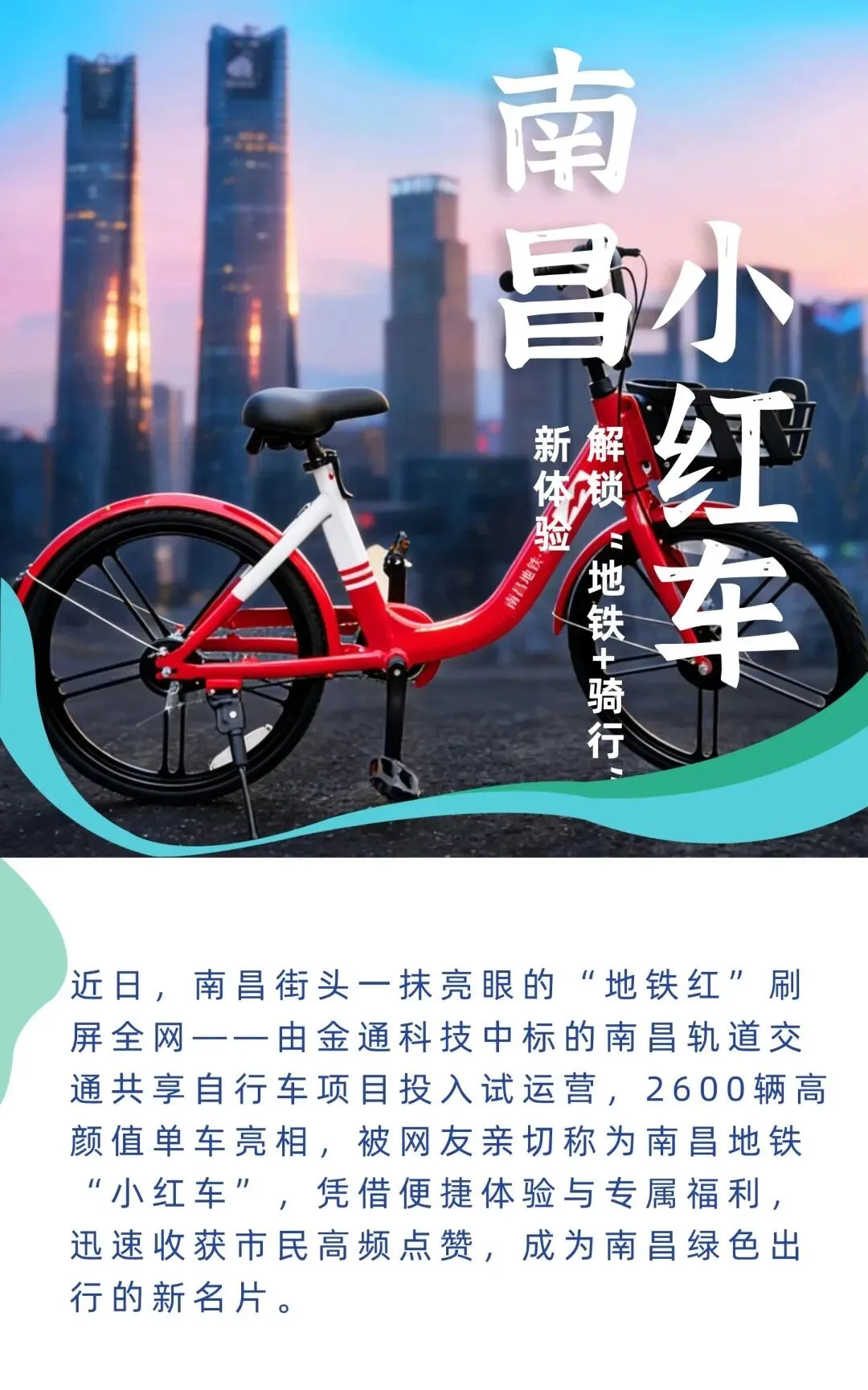 为进一步提升市民出行体验,南昌地铁推出“地铁+骑行”联程优惠,市民使用“南昌地铁乘车码”乘坐地铁后,30分钟内骑行南昌地铁共享电单车/单车享受9折优惠,轻松解锁沿江骑行、短途接驳等多元出行场景,让绿色出行更具吸引力。