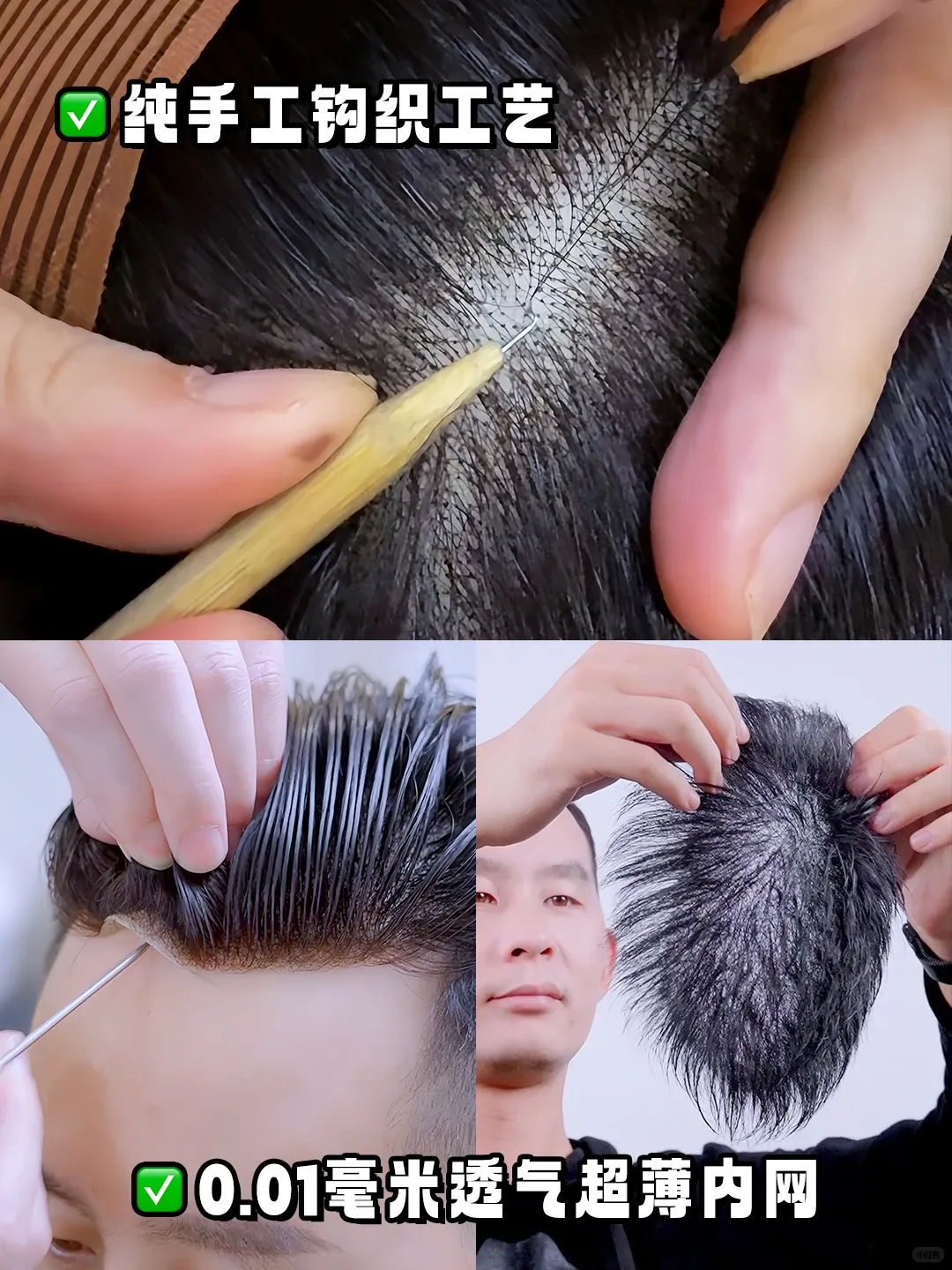 ✅专业设计师1V1精准测量,一人一版一膜,全手工钩织工艺🤏,定制出专属于你的透气隐形假发~