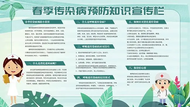 春季是传染病高发期,假期期间请保持良好的卫生习惯,勤洗手、常通风,尽量避免前往人群密集、空气不流通的场所;合理安排作息,均衡饮食,适当进行体育锻炼,增强体质;若出现发热、咳嗽等不适症状,及时就医并告知学校。