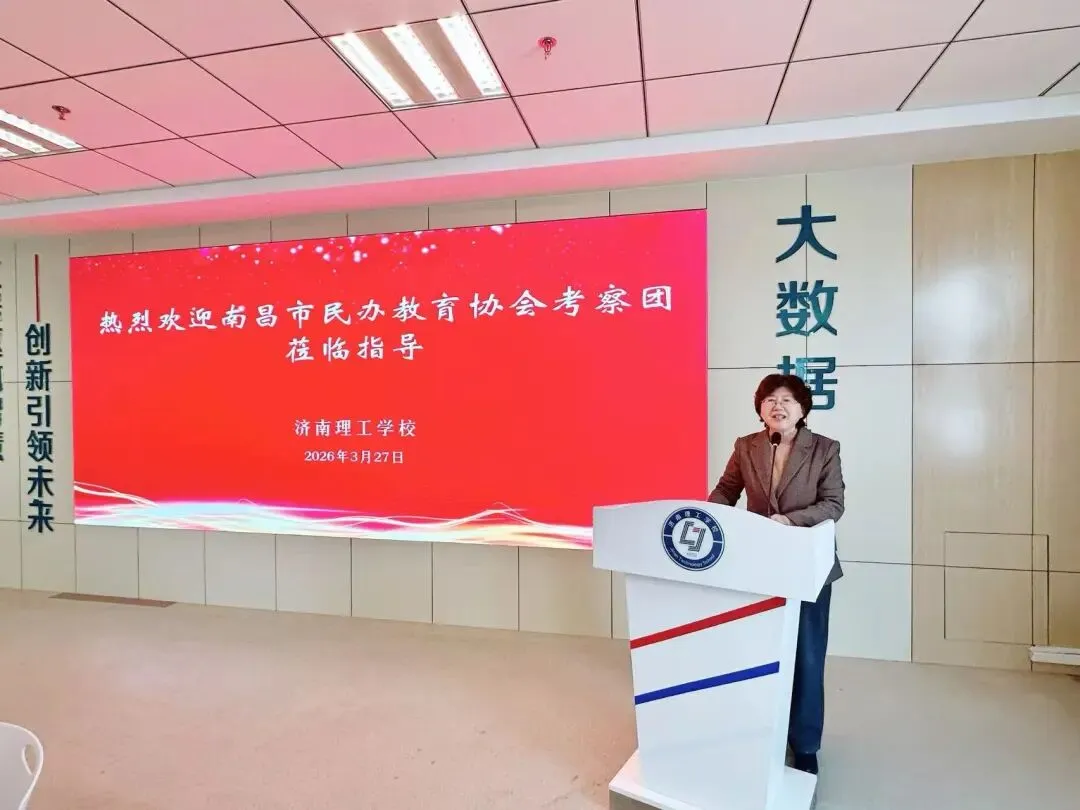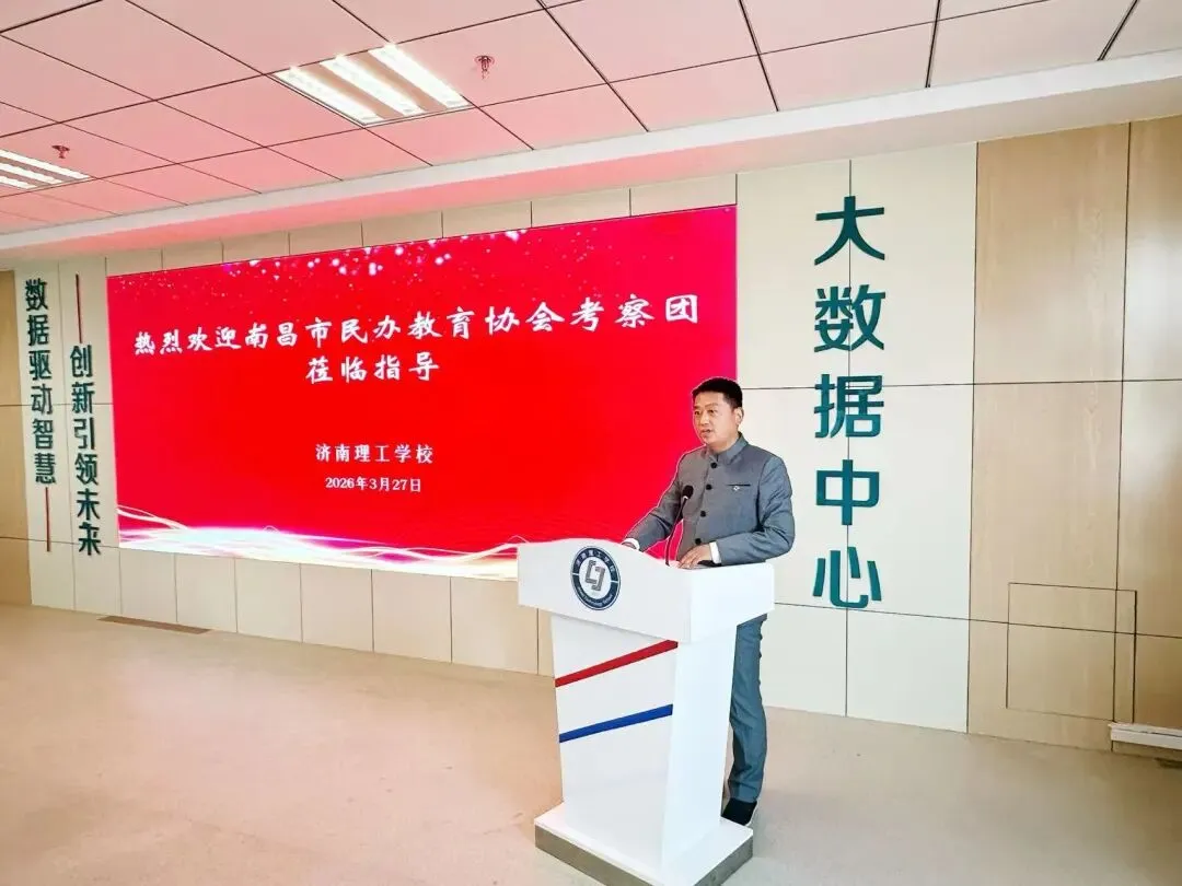山东省民办教育协会副会长、济南市成人教育协会秘书长、济南市教培行业团工委书记徐强参与活动,并致辞欢迎考察团一行,希望以此次考察为契机,深化鲁赣两省民办教育交流合作,实现经验共享、优势互补。济南理工学校党总支书记乌娟致欢迎词,详细介绍了学校的办学历程、发展定位及办学成果,重点阐述了学校在职业教育领域的深耕细作与创新突破。济南理工学校副校长孟怀谷围绕中等职业教育春季高考,从备考体系构建、教学资源建设、师资队伍培养、技能实训开展等方面,详细分享了学校的实践探索与办学经验,结合具体案例讲解了学校在专业建设、高考备考等方面的具体举措。