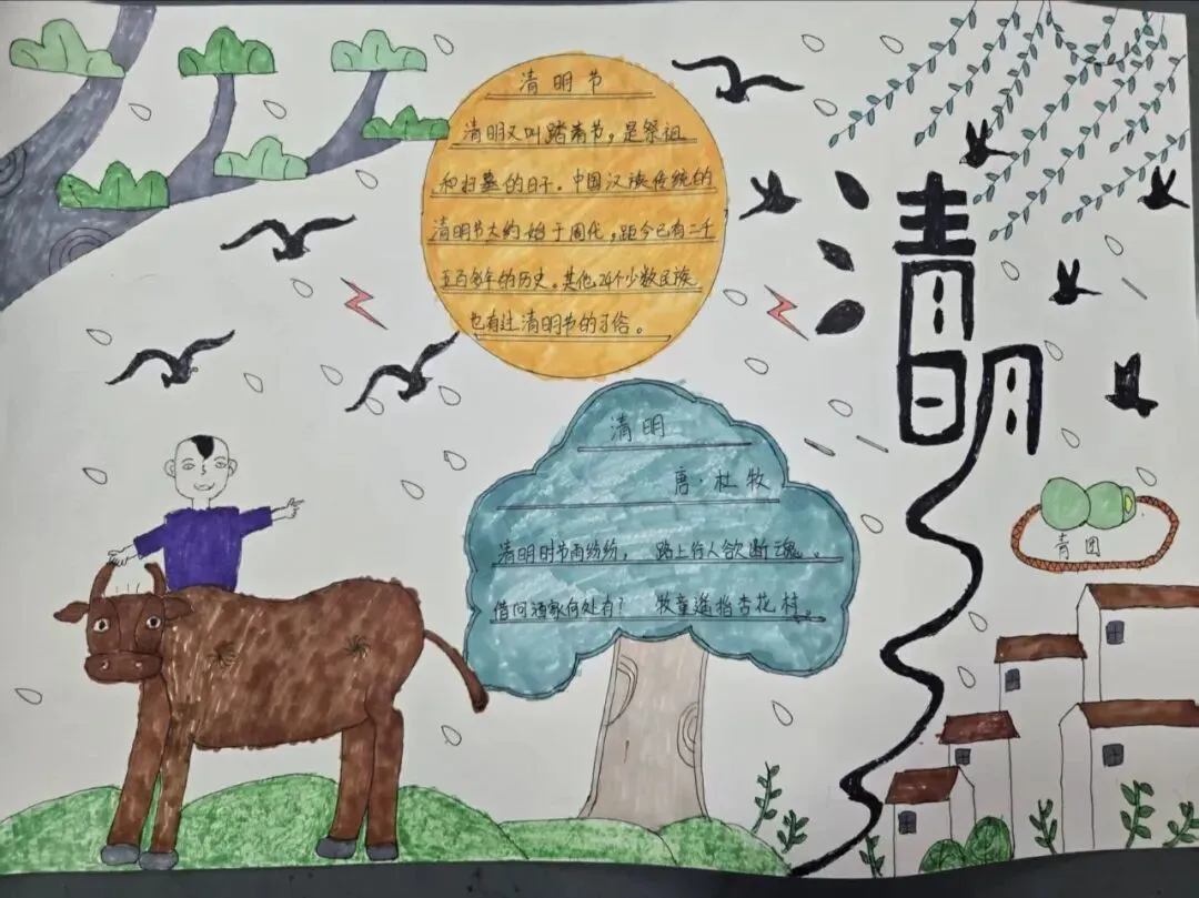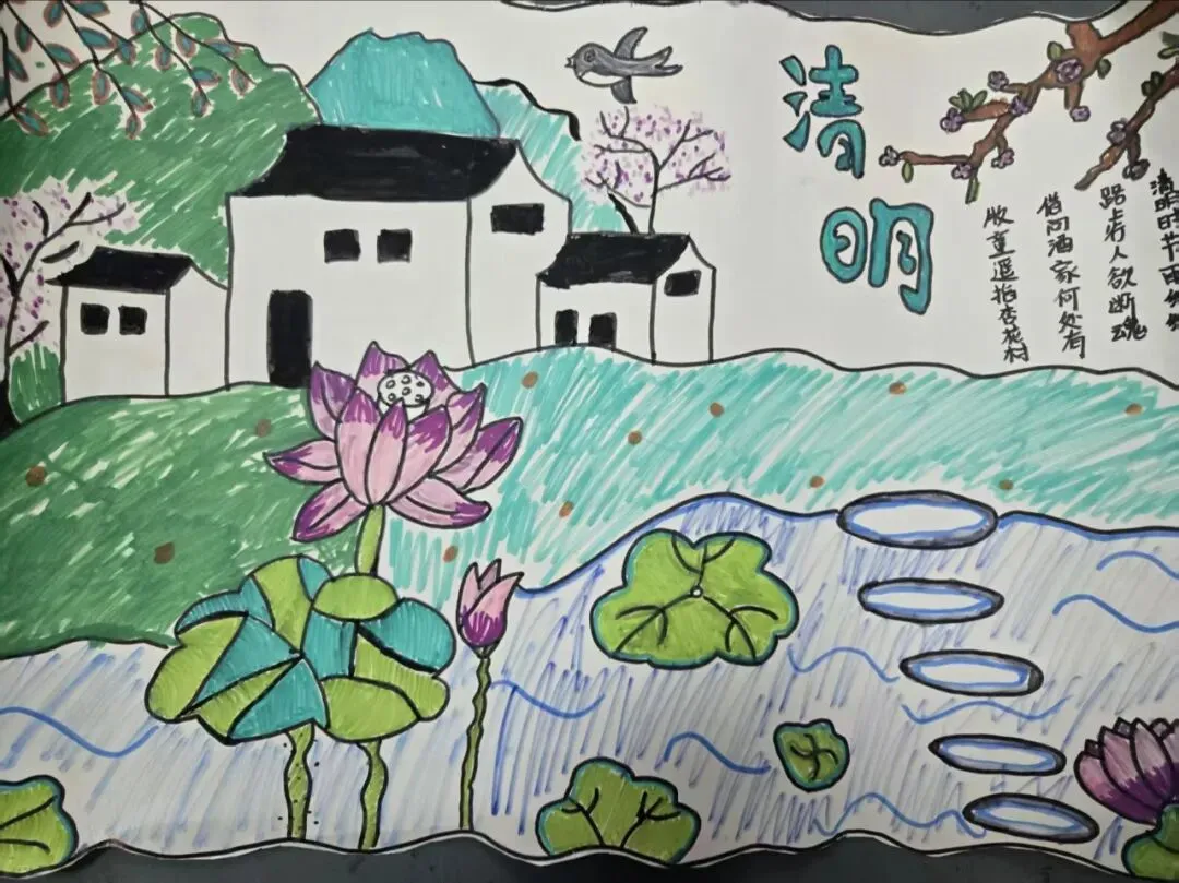 同学们以“清明”为主题创作手抄报。大家用画笔将清明文化、革命历史与少年志向融于作品之中。一幅幅色彩鲜明、内容丰富的手抄报,既是对传统文化的传承,也是新时代少年致敬英烈、立志报国的生动表达。